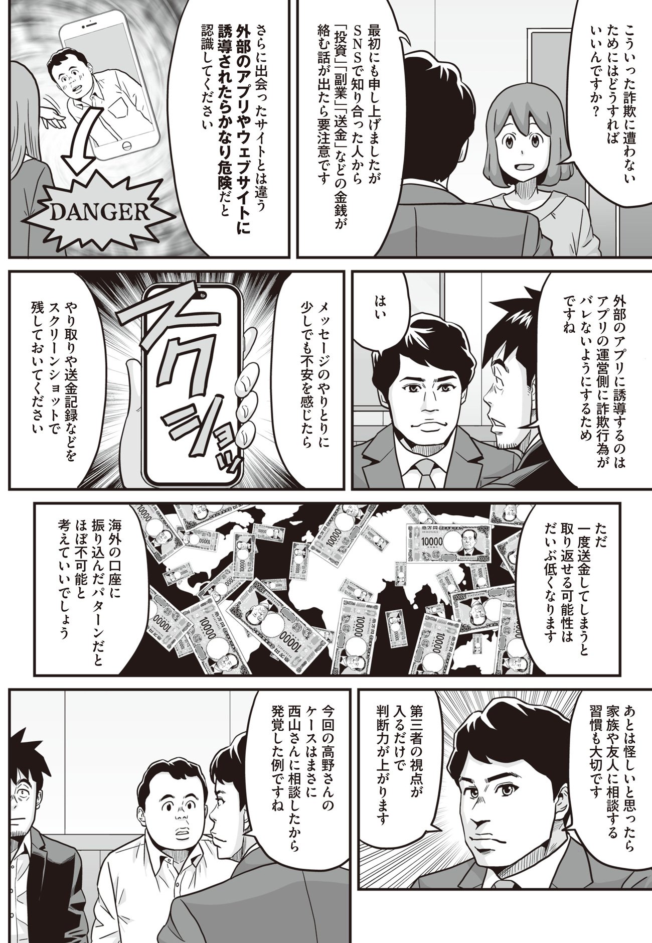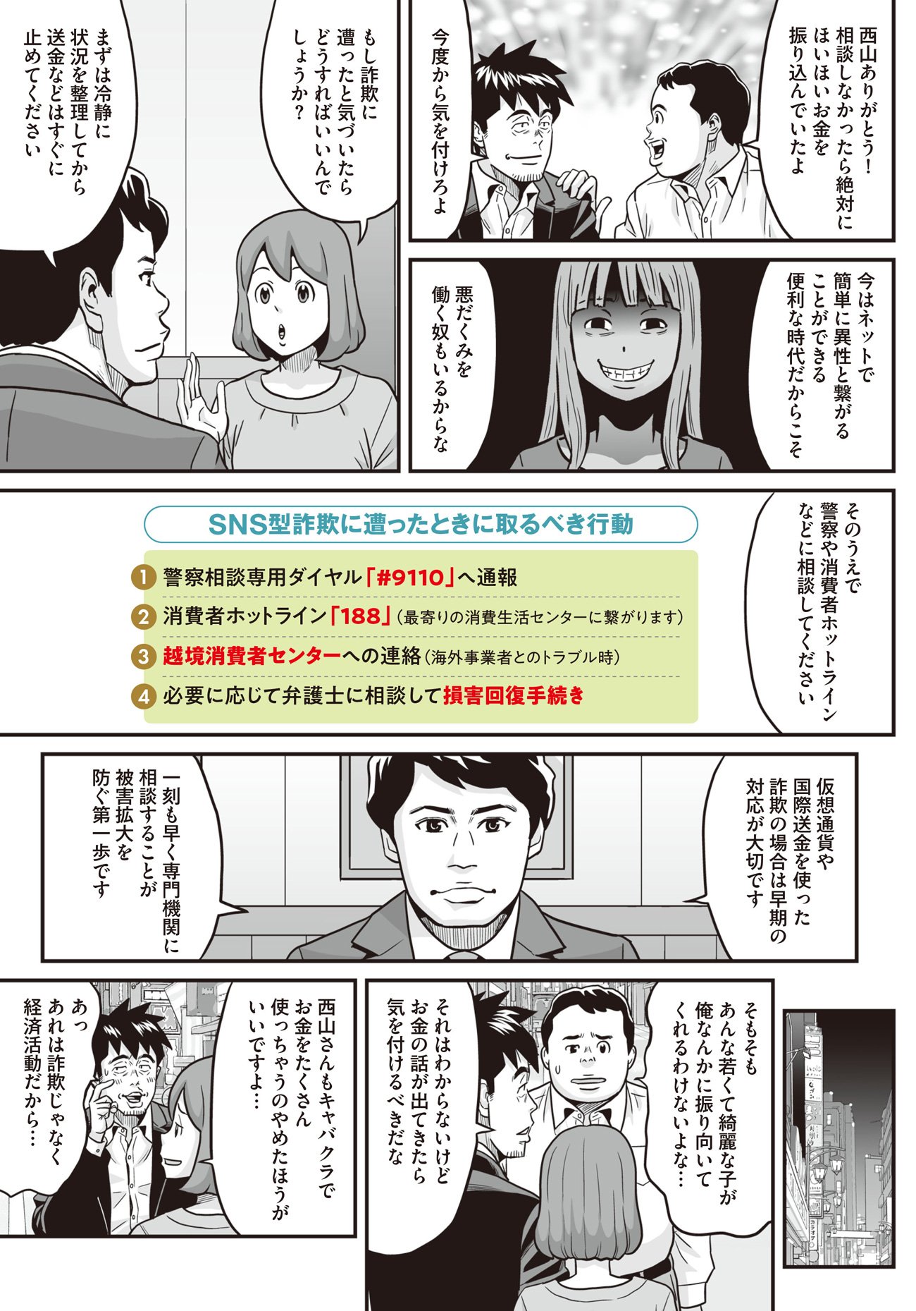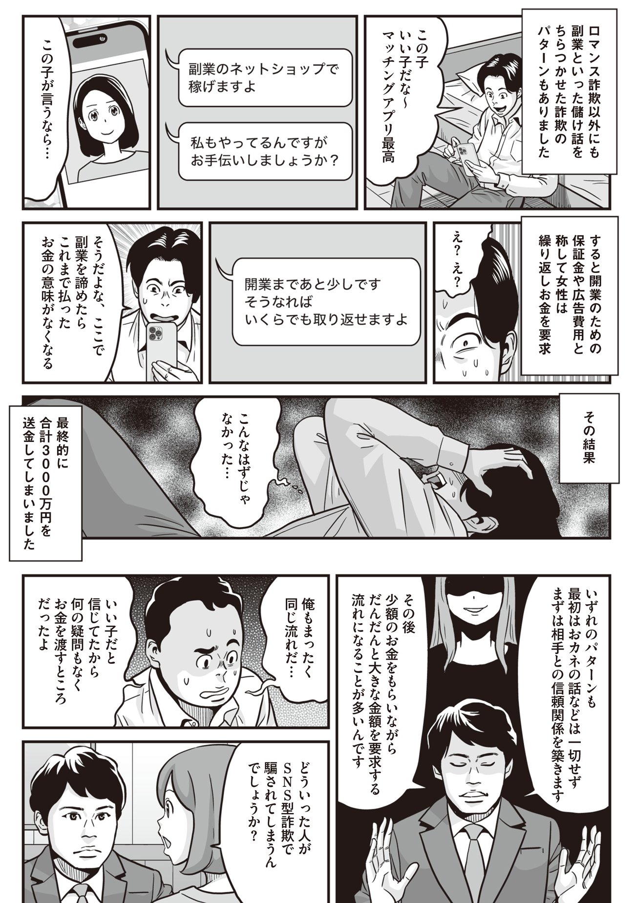 【マンガ】被害者の75%が中年世代!SNS型ロマンス詐欺に引っかかる人の共通点って? 西アズナブル マネー・投資ホットニュース from ZAi 2025年11月3日 12:00 記事をクリップ URLをコピー 記事を印刷 Xでシェア Facebookでシェア はてなブックマークでシェア LINEでシェア noteでシェア 詐欺に引っ掛かりやすいのは40~60代の中年世代! 金融リテラシーが高い人でも被害に遭うことは珍しくない! 拡大画像表示 拡大画像表示 拡大画像表示 拡大画像表示 「ダイヤモンド・ザイ」2025年12月号は好評発売中! 「10倍株」厳選62銘柄! 第1特集は、「10倍株の見つけ方&プロ厳選62銘柄」。 誰もが夢見る10倍株。5~10年の中長期で業績が拡大する銘柄を狙う方法が王道です。「ストーリーで買う」「海外で躍進する」「決算書から見抜く」の3つのポイントからプロが選んだ10倍期待株62銘柄を大公開します。 もう1つの日本株特集が「ザイの理論株価の使い方&注目の割安株28」! 優待名人・桐谷さんも大活用しているザイの「理論株価」。今回そのしくみや使い方をじっくり解説。「割安成長株」「割安転換株」「株価改善株」の3つのタイプの割安注目株を紹介します。 その他の注目特集はこちら! ・2025年NISA年末戦略:年内にやるべきことがわかります! ・【別冊付録】Jリート入門:年5%の利回りも!値上がり益も狙えて大注目! ・節約女王・松本明子流ケチ道 節約術26:節約って実はこんなに楽しい! など 好評発売中です! ぜひご購読を。 1 2 記事をクリップ URLをコピー 記事を印刷 Xでシェア Facebookでシェア はてなブックマークでシェア LINEでシェア noteでシェア 有料会員限定機能です詳細はこちら おすすめの会員限定記事 「定年後の働き方」を決める前に絶対にやるべき“たった1つのこと”とは?【社労士が解説】 メールで「~してください」を「~して下さい」と漢字で書く人たちの共通点〈見逃し配信〉 関連記事 スニーカー戦争の主役が変わった!ナイキの時代に終止符を打ったアシックスの強みとは? 今村光博,ダイヤモンド・ザイ編集部 「40万円払っても月に+3400円だけ…!?」学生時代に未納だった国民年金保険料、後から追納すべき? ダイヤモンド・ザイ編集部 ファーストクラスで月1回は世界一周!各地を飛び回るフリーランス商社マンの“タイムマシン経営術”とは? 渡辺賢一,ダイヤモンド・ザイ編集部 「こんなに使えるの!?」紙袋・レシート・ストッキング…松本明子の“捨てない暮らし術”がすごい! ダイヤモンド・ザイ編集部 特集 あなたにおすすめ