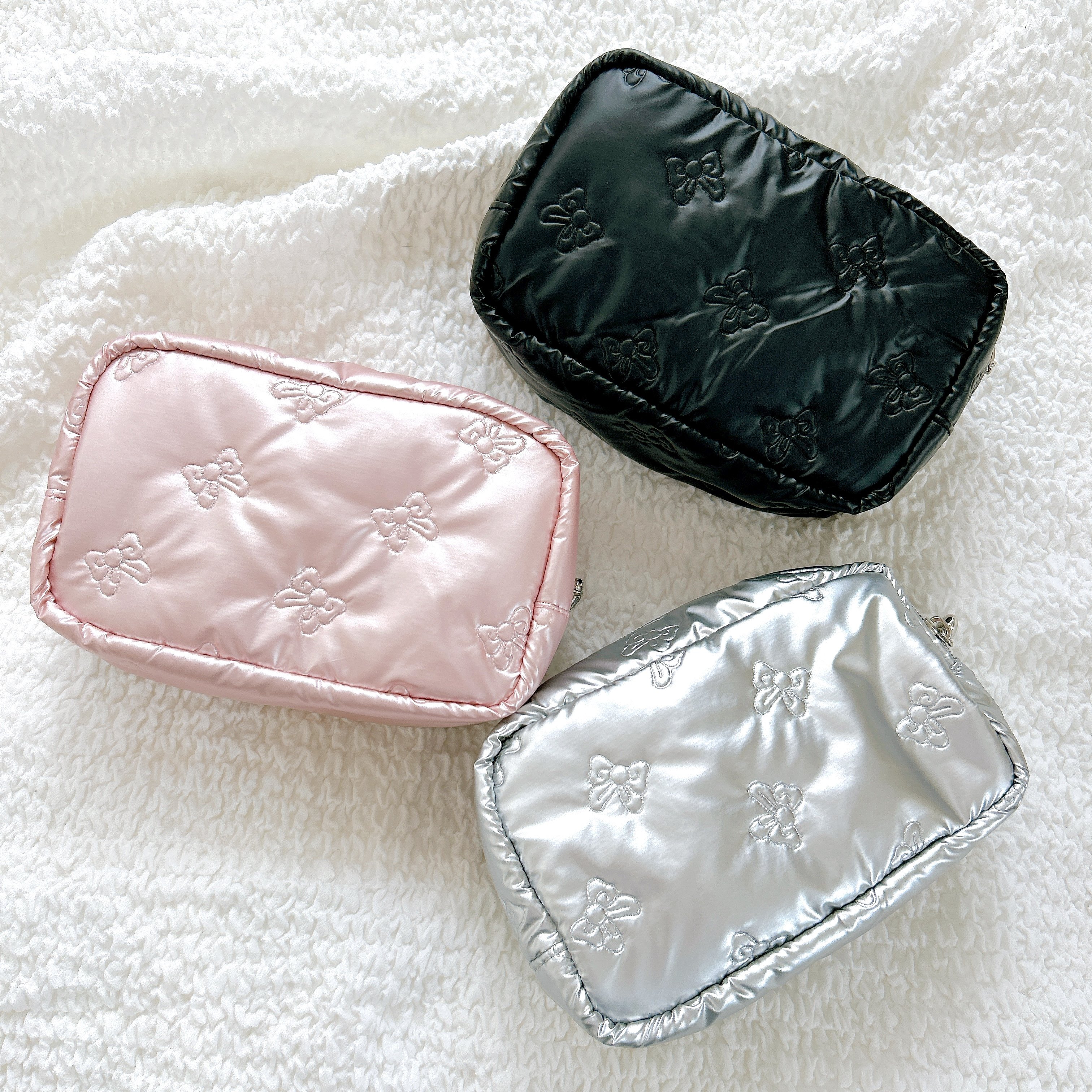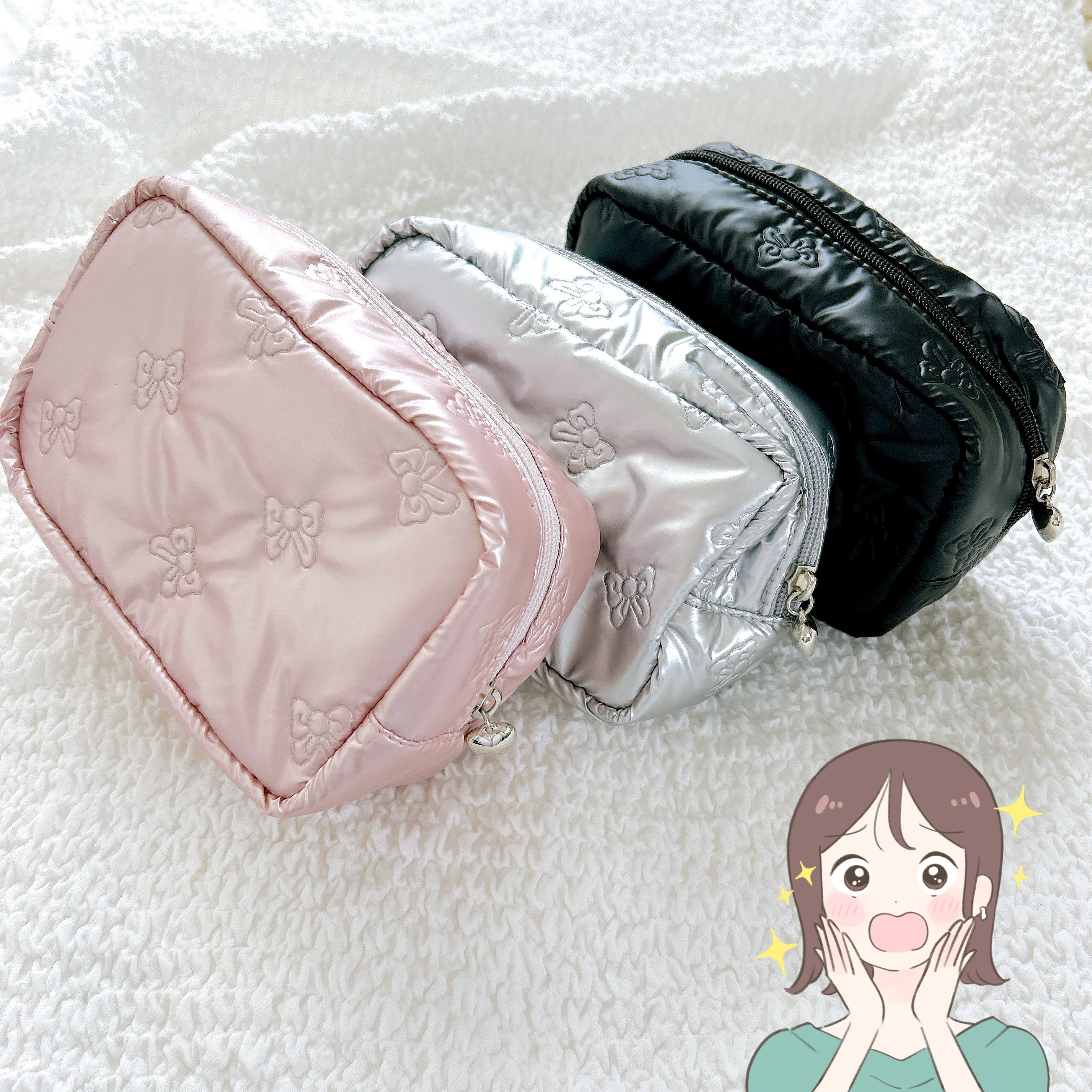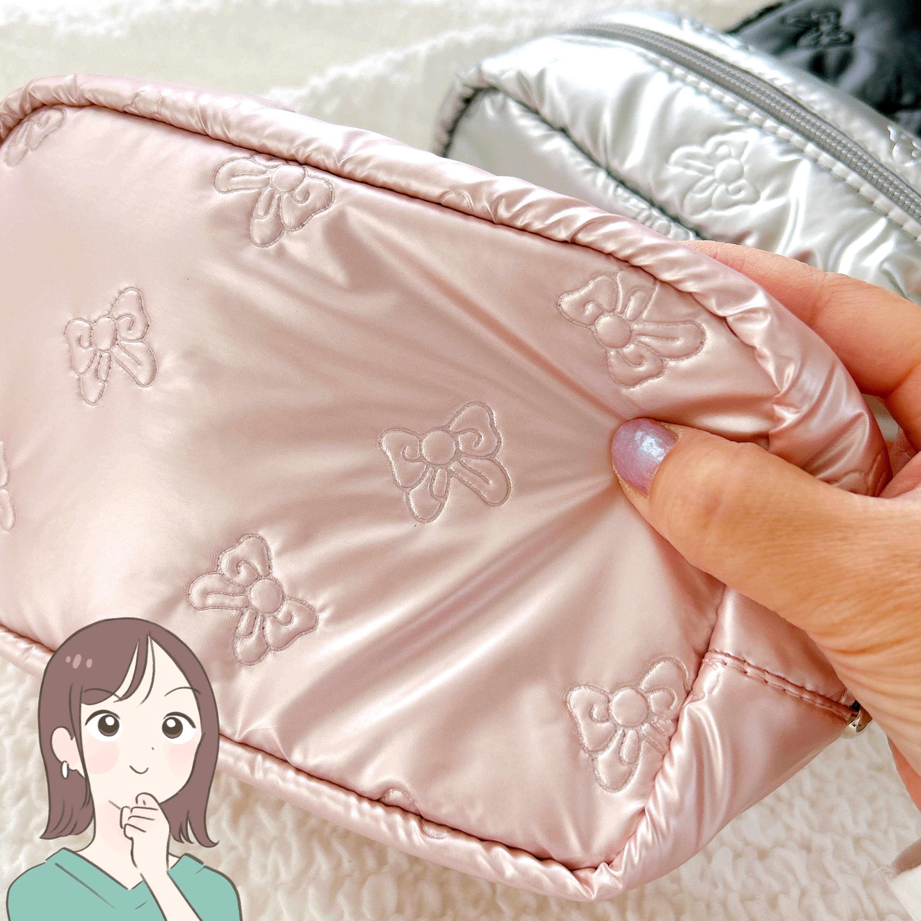販売中の「メタリックリボンポーチ」がオシャレで使いやすいと注目を集めています。