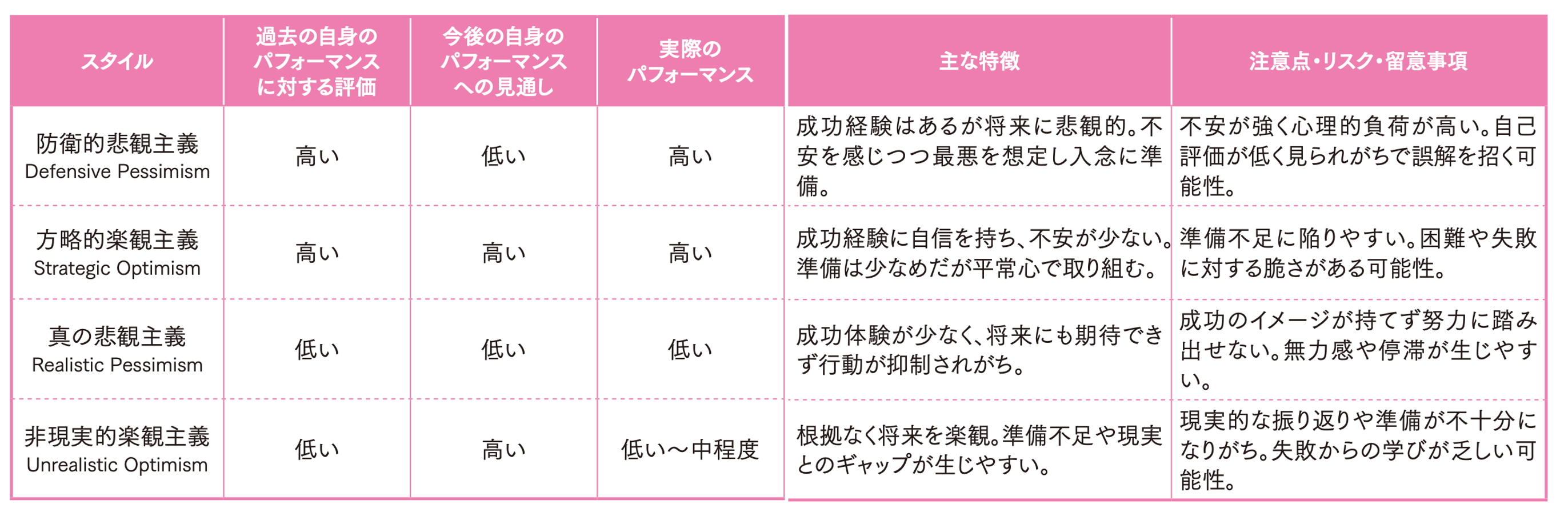 防衛的悲観主義:「うまくいかないかも」と考え、不安を原動力にして入念に準備し、成功につなげる思考スタイル。