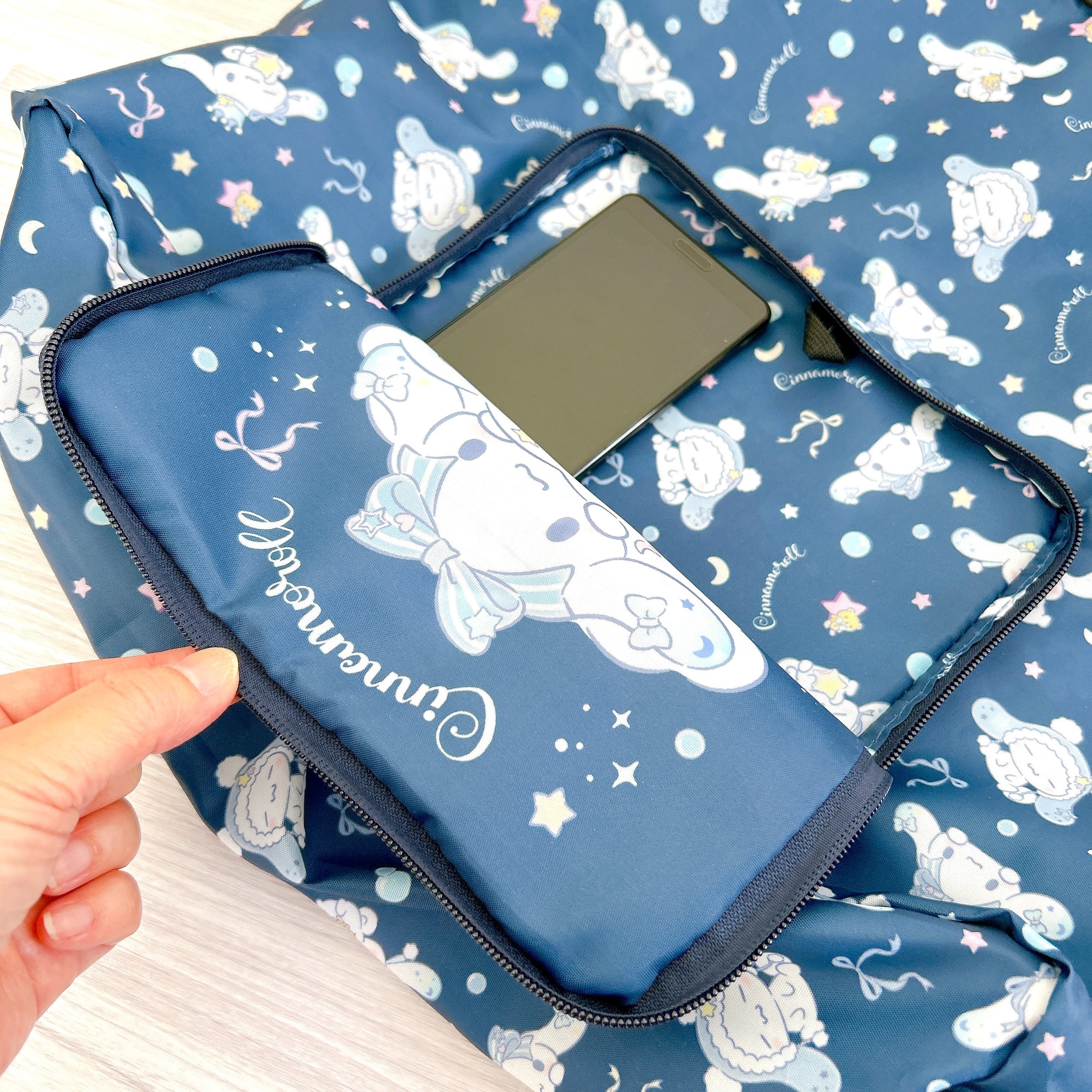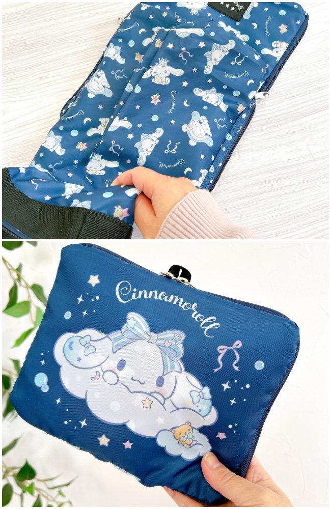 ポケットの裏側には雲に乗ったシナモンたちが大きく描かれ、折りたたむと見える仕組みに。たたんだ状態でもかわいくてテンションが上がります!