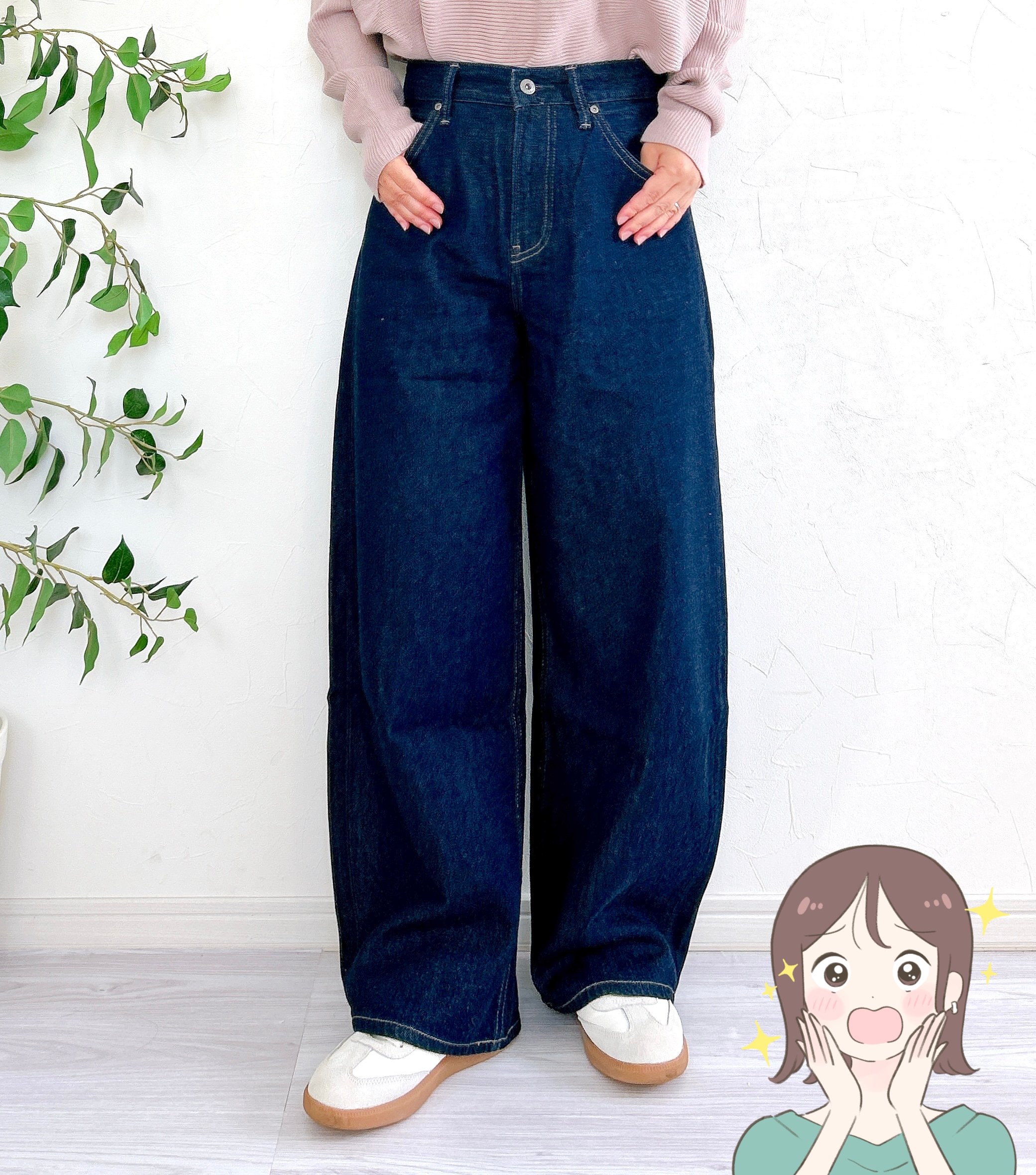 販売中の「バギーカーブジーンズ丈短め」が、裾上げせずに穿けてオシャレだと注目を集めています。