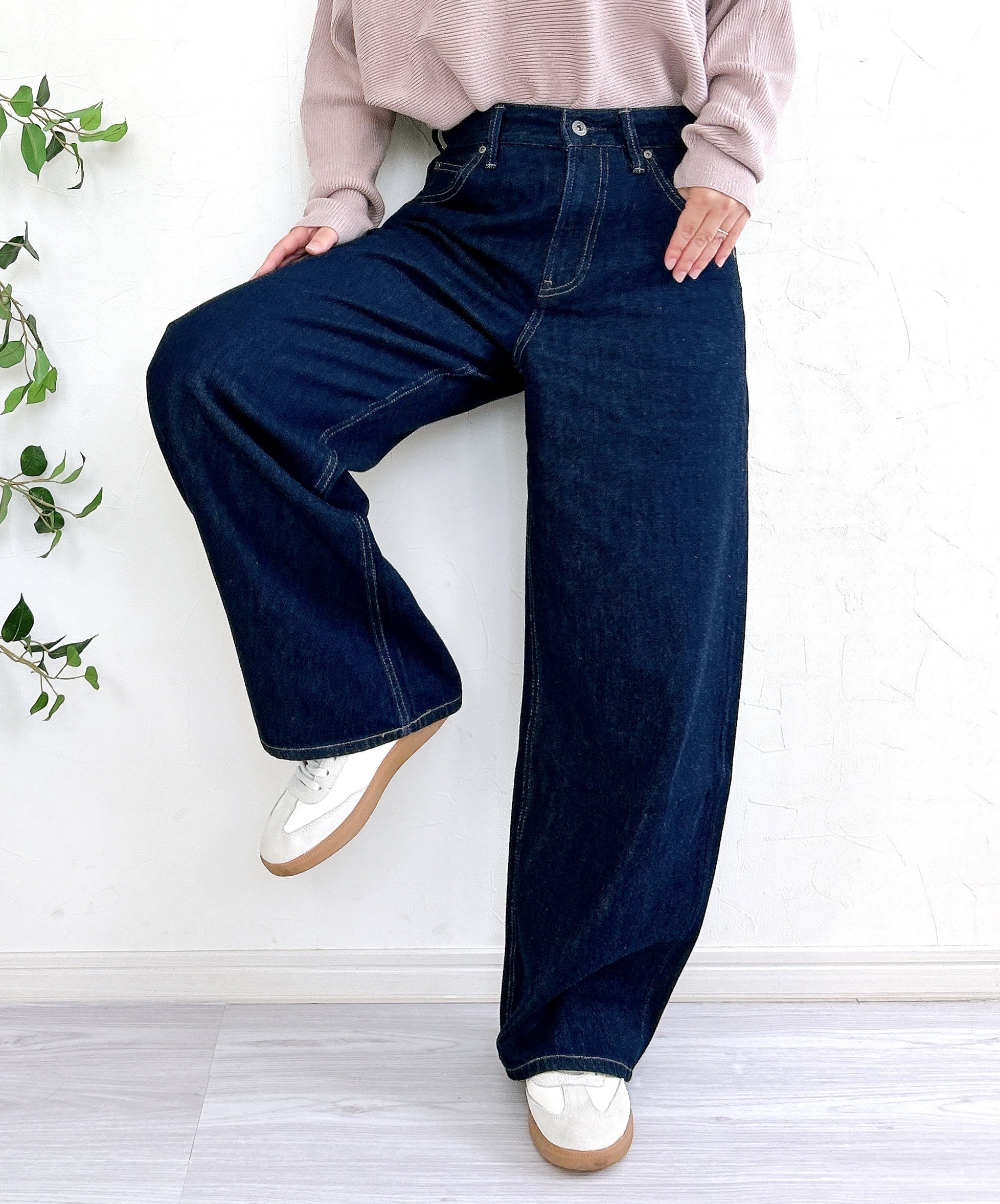 太ももあたりが太く、裾に向けてだんだん細くなるバレルシルエット。ゆったりしたデザインなので、下半身の気になるところをまるっとカバーしてくれます。特にヒップラインを隠せるのが嬉しい!カジュアルにもきれいめにもたっぷり着回せますよ。
