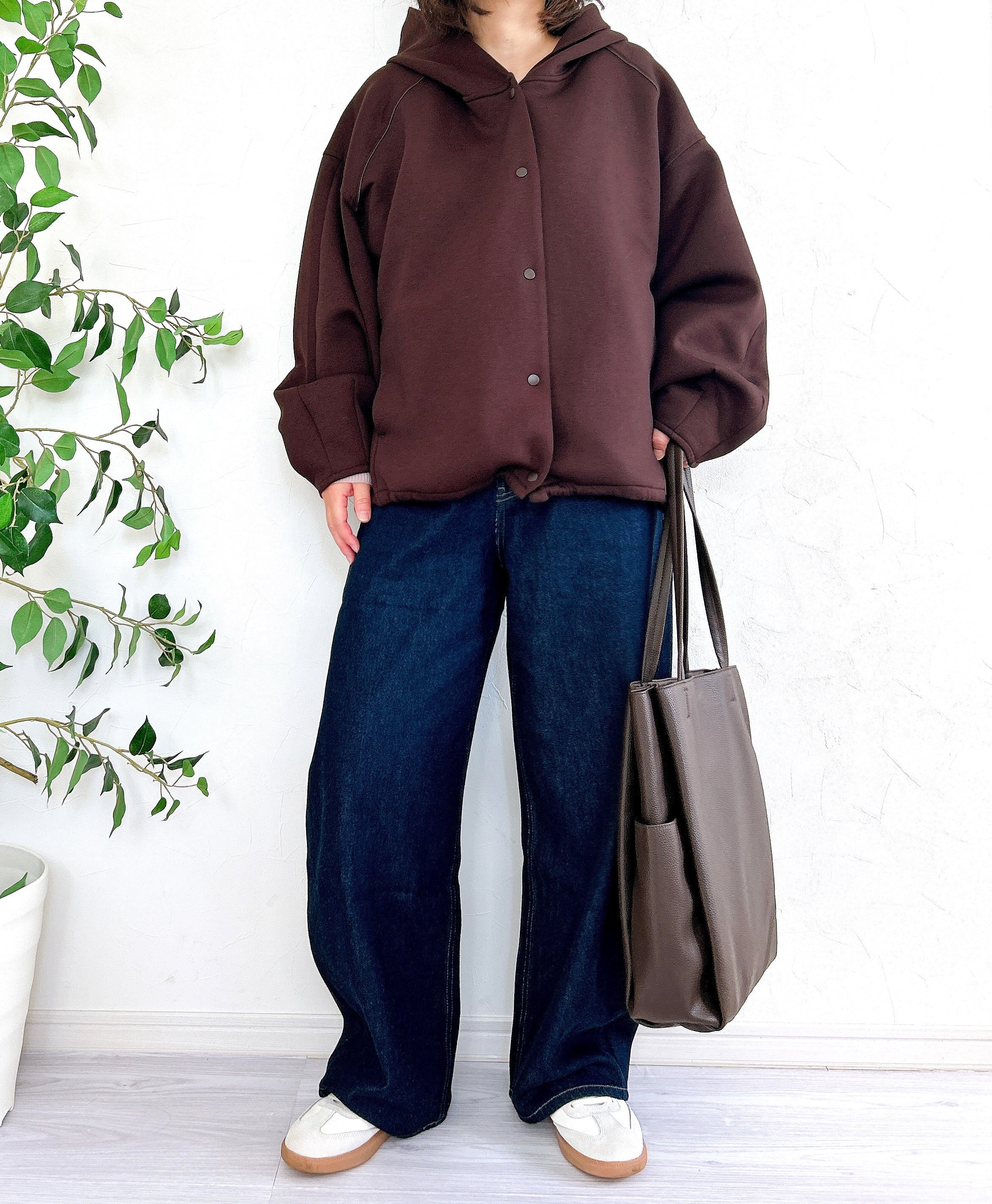 パーカーなどのボリューム感のあるトップスと合わせると、上品にゆるっとした仕上がりに。今っぽく大人カジュアルな着こなしが楽しめますよ。