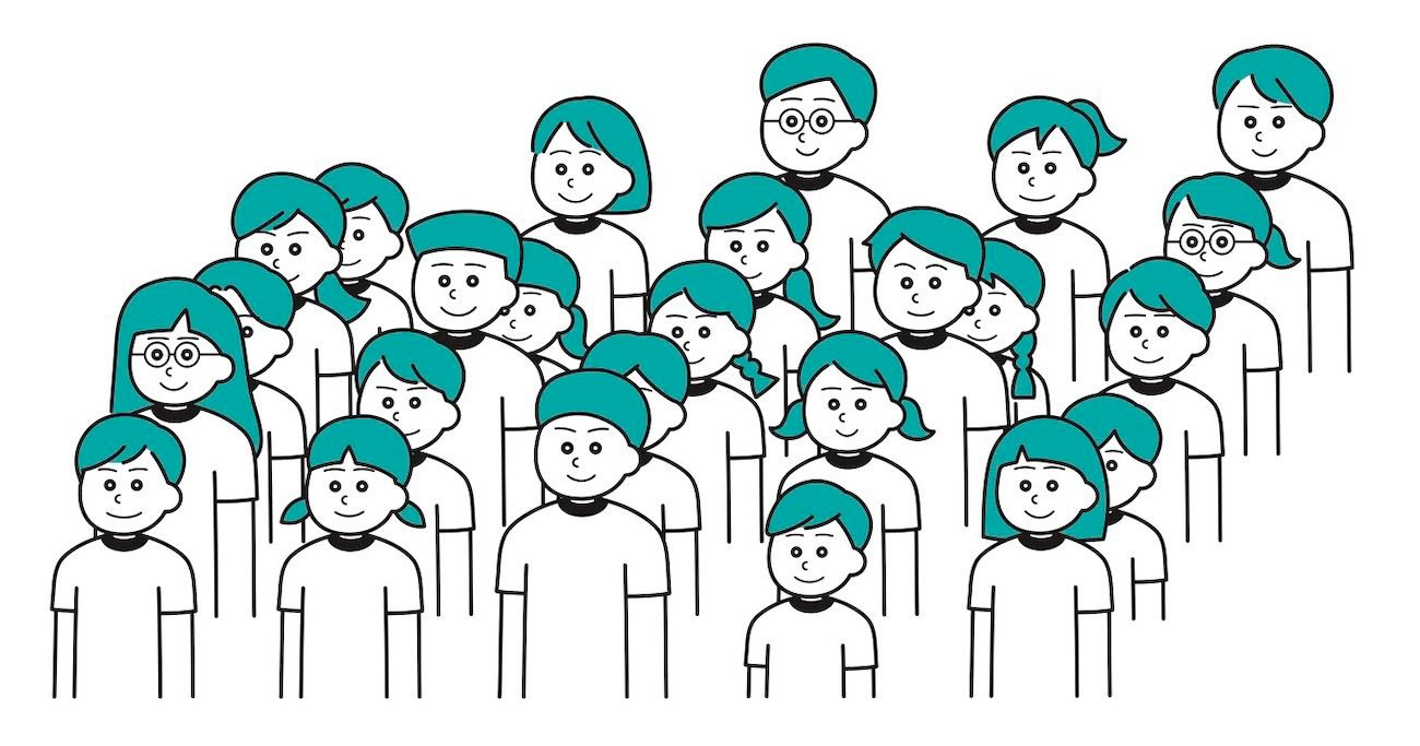 ある学校の生徒たちが、5人ずつ、5列になって並んでいる。