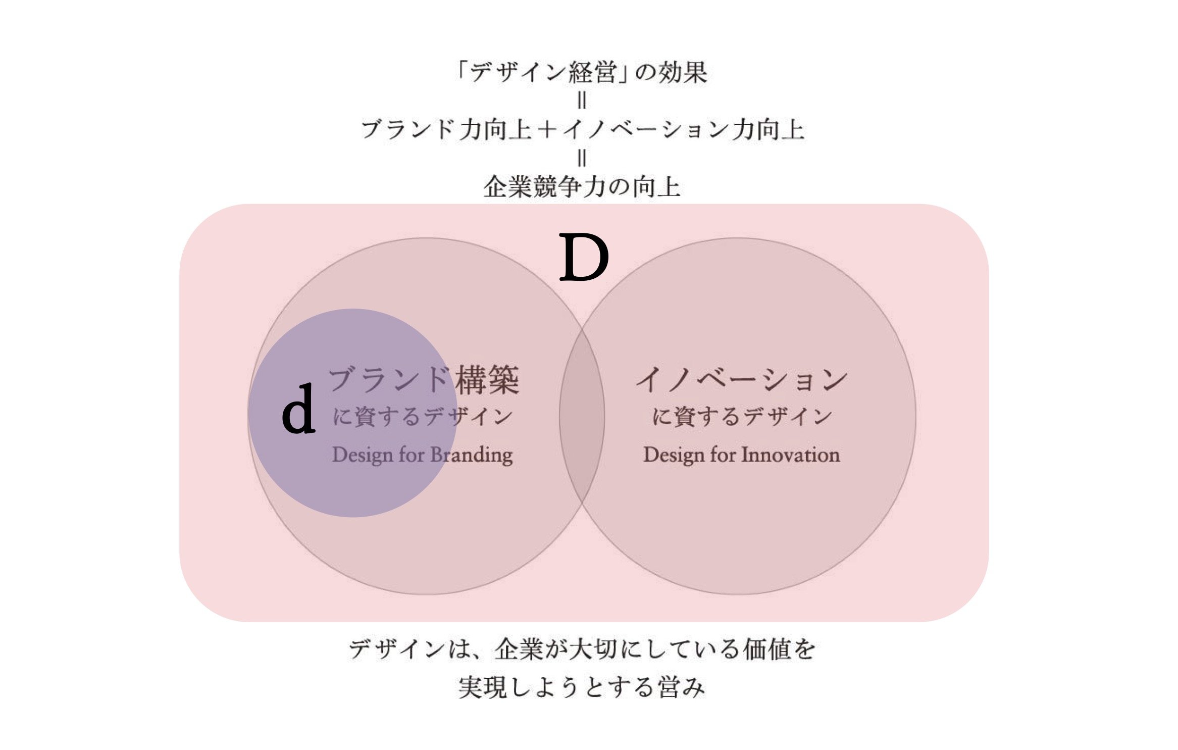 本来、経営におけるデザインとは、このD全体を扱うこと。造形の美しさも含めた“全体の構想”を設計することなんです。デザインを経営の仕組みそのものとして扱えるかどうか――そこに、日本企業の次の課題があると思います。
