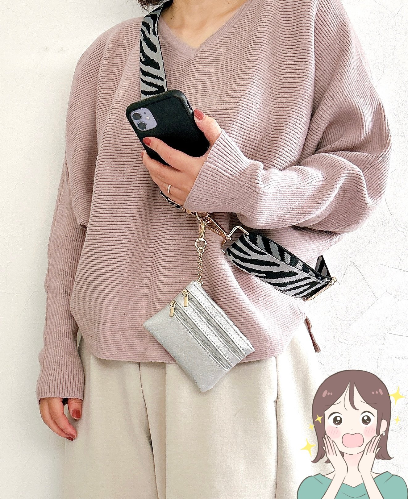 さらにリップや鍵も入るし、スマホも取り付けられるとあって、ちょっとしたお出かけならこれだけで十分!もっとシンプルなデザインもあれば嬉しかったですが、手ぶらで持ち歩けて楽ちんですよ。