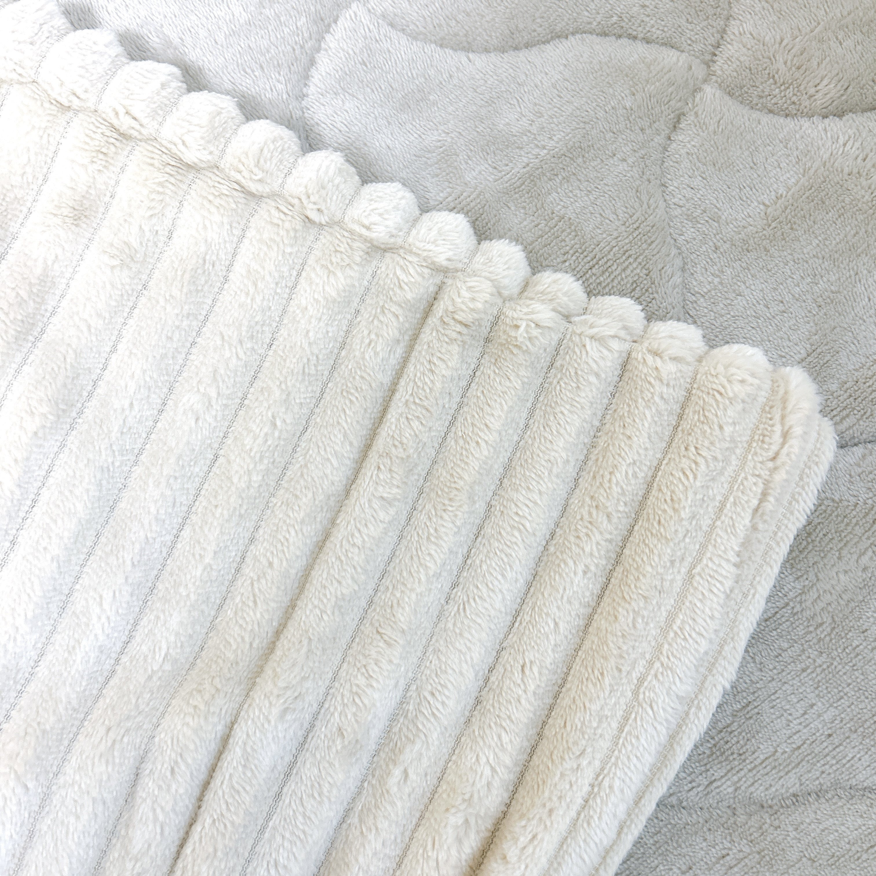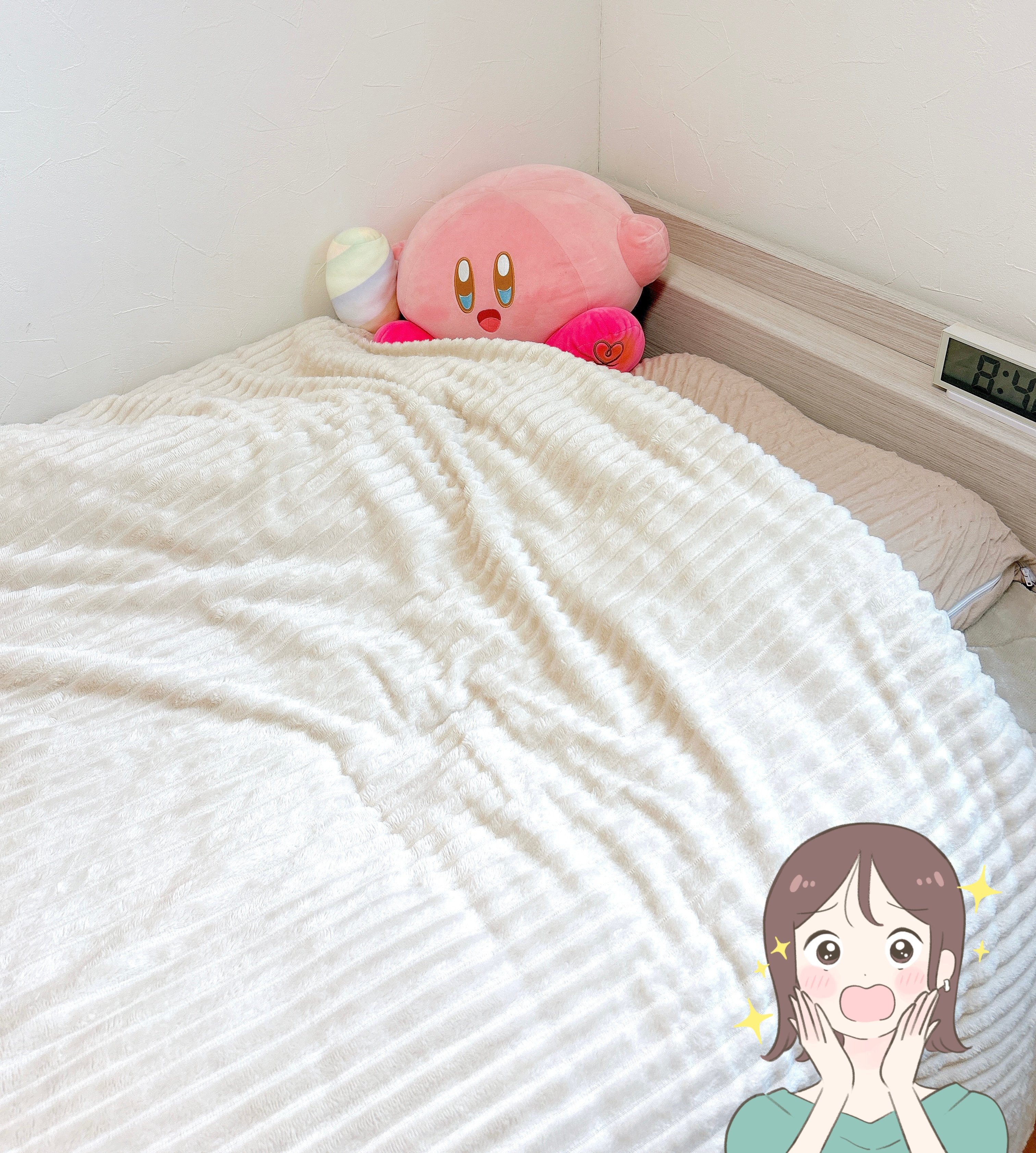まるで毛布みたいな見た目のあったか布団カバーです。ほどよく厚みがあるため、ちょっと肌寒いときはこれ1枚で毛布として、寒くなってきたら布団を入れて布団カバーとして使える2WAYアイテム!
