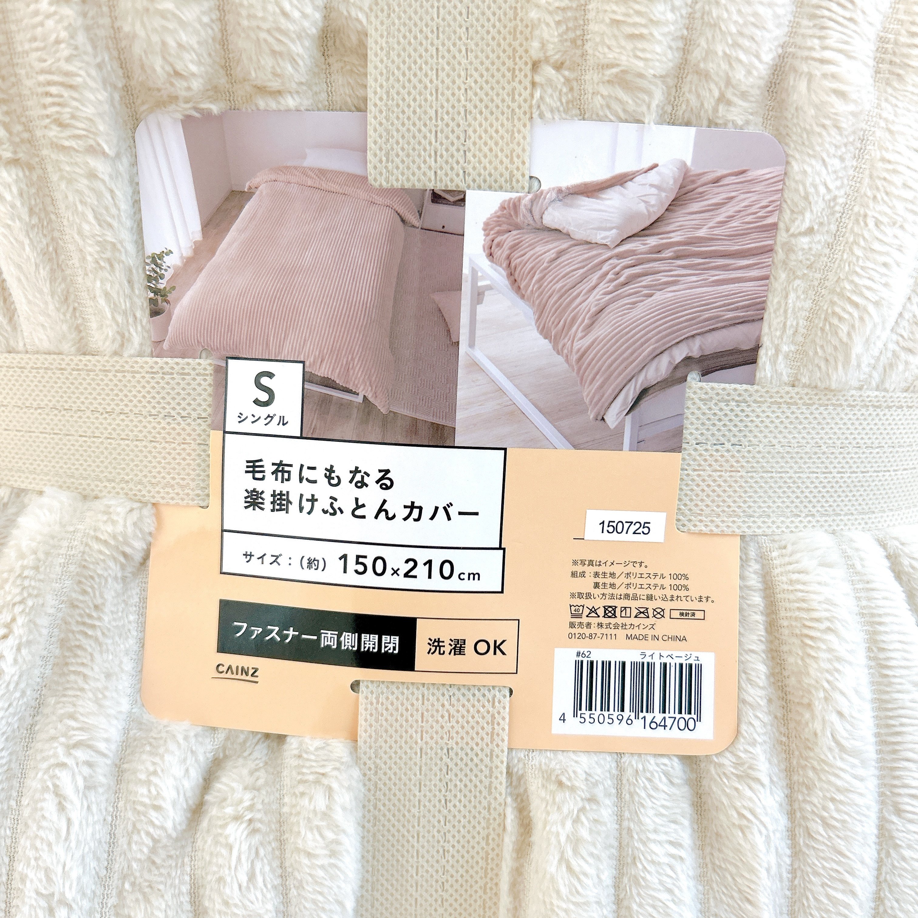 今回レビューするのは「毛布にもなる楽掛けふとんカバー」です。あったかそうな見た目に惹かれて購入しました。