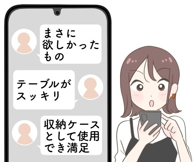 公式サイトのレビューでは「まさに欲しかったもの」「スマホ、リモコンやペンなど収納できてテーブルがスッキリ」「布団回りのごちゃごちゃが片付きました」「狭い場所でも収納ケースとして使用でき満足」などのコメントが寄せられています。
