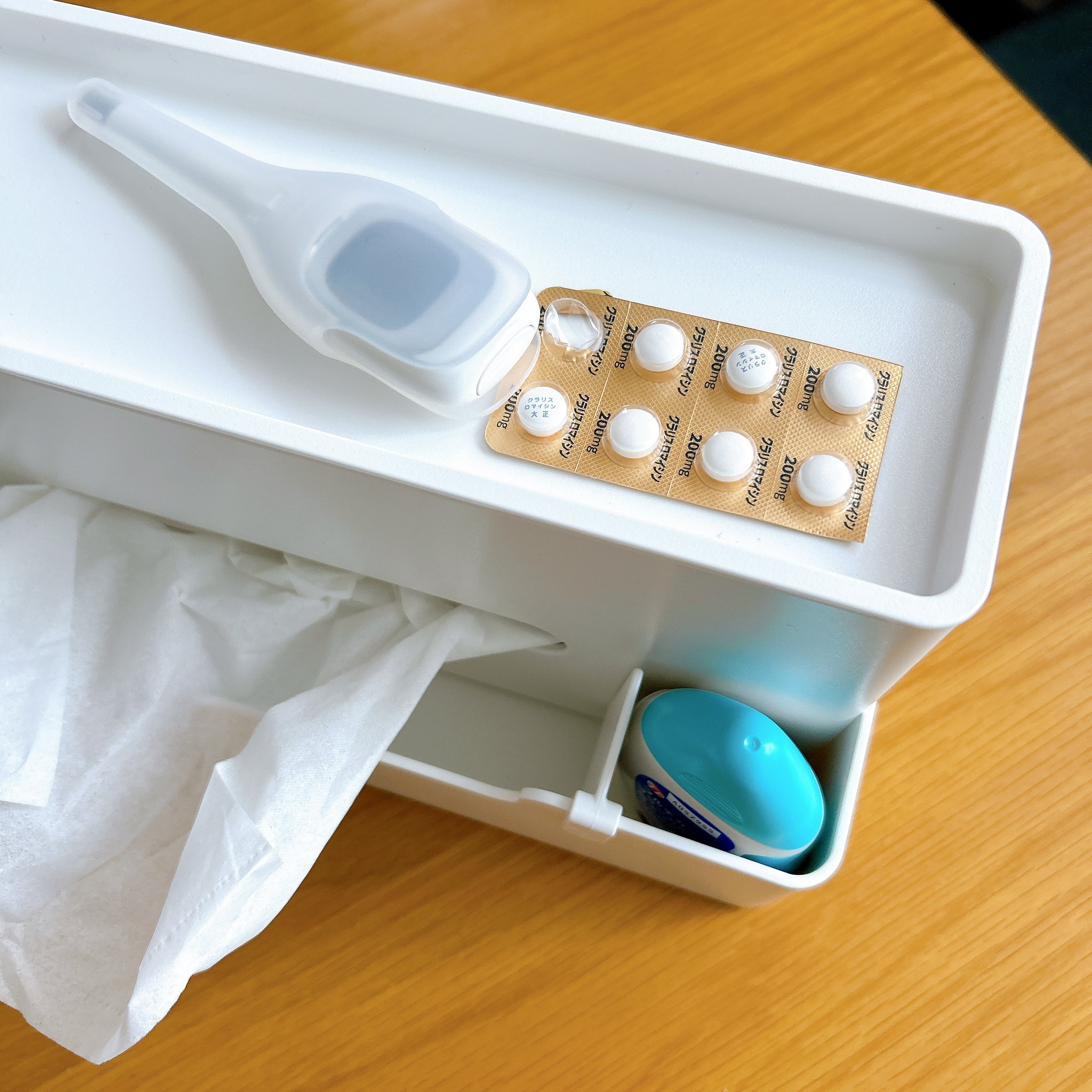 薬などの細々とした物もまとめておけて便利です。薬の飲み忘れも防げるし、救急箱代わりにもなってくれます。