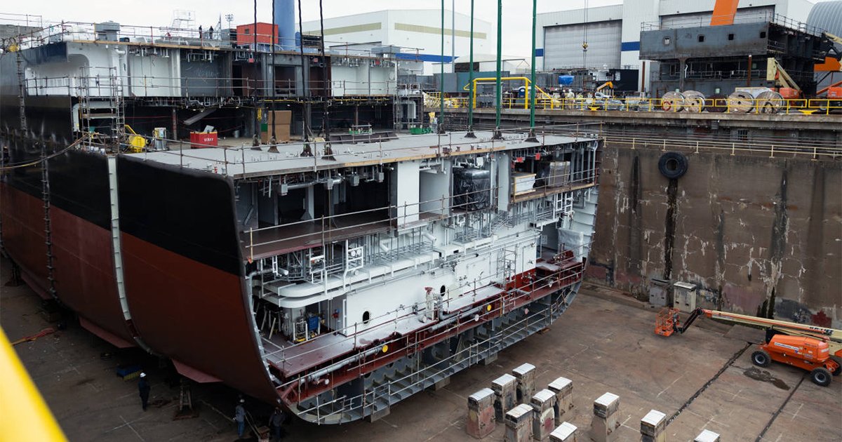 フィラデルフィアのハンファ・フィリー造船所で建造中の船舶