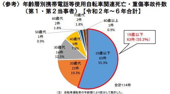 一方、スマホや携帯のながら見運転は19歳以下に多い 内閣府「特集 自転車の安全利用の促進について」より引用 拡大画像表示
