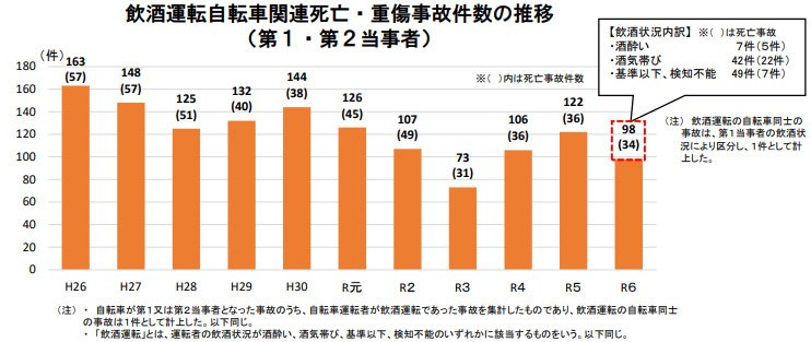 飲酒運転による自転車死亡・重傷事故は増加傾向にある 内閣府「特集 自転車の安全利用の促進について」より引用 拡大画像表示
