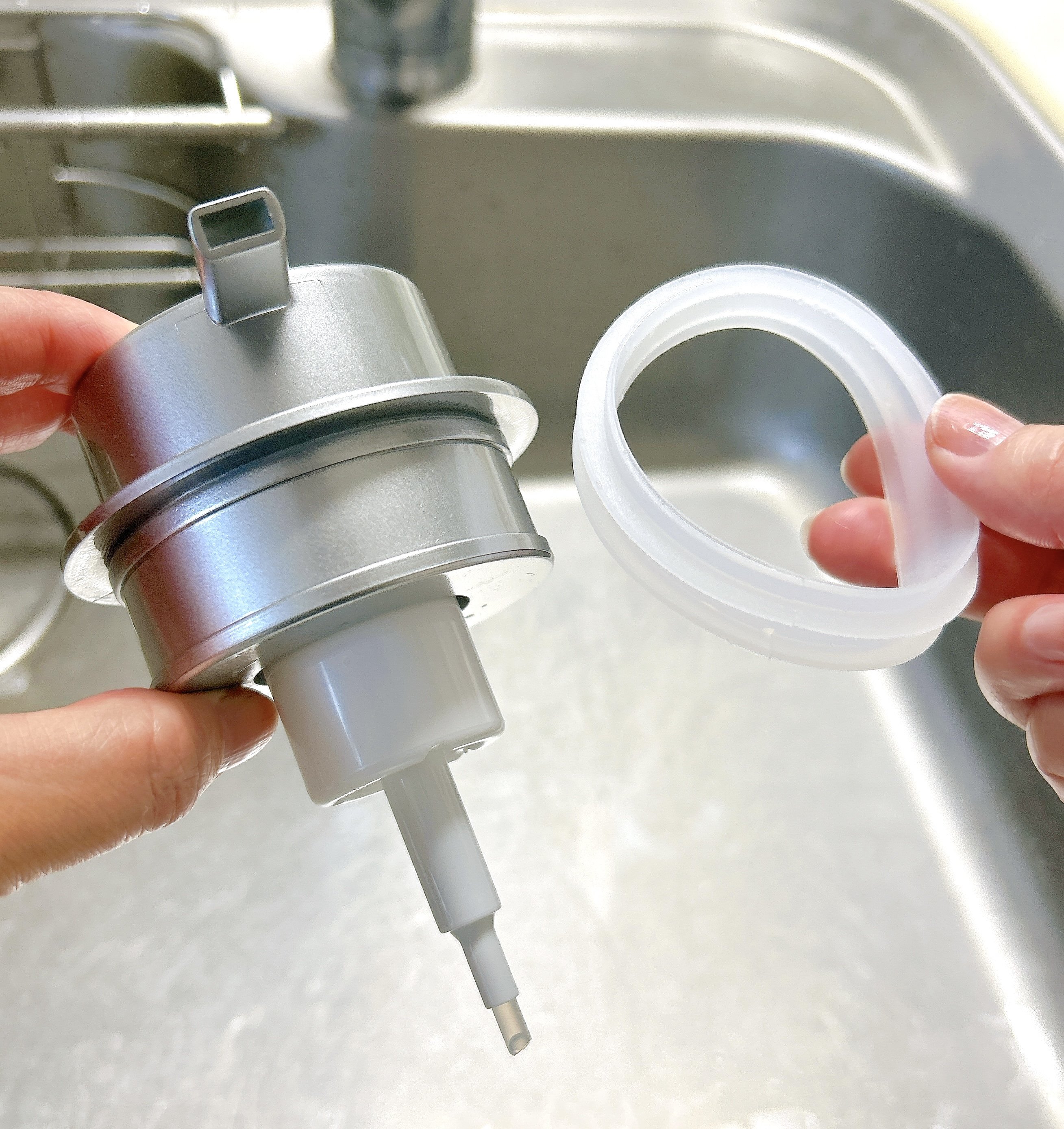 ポンプに付いているパッキンもサッと外すことができ、お手入れしやすいですよ。