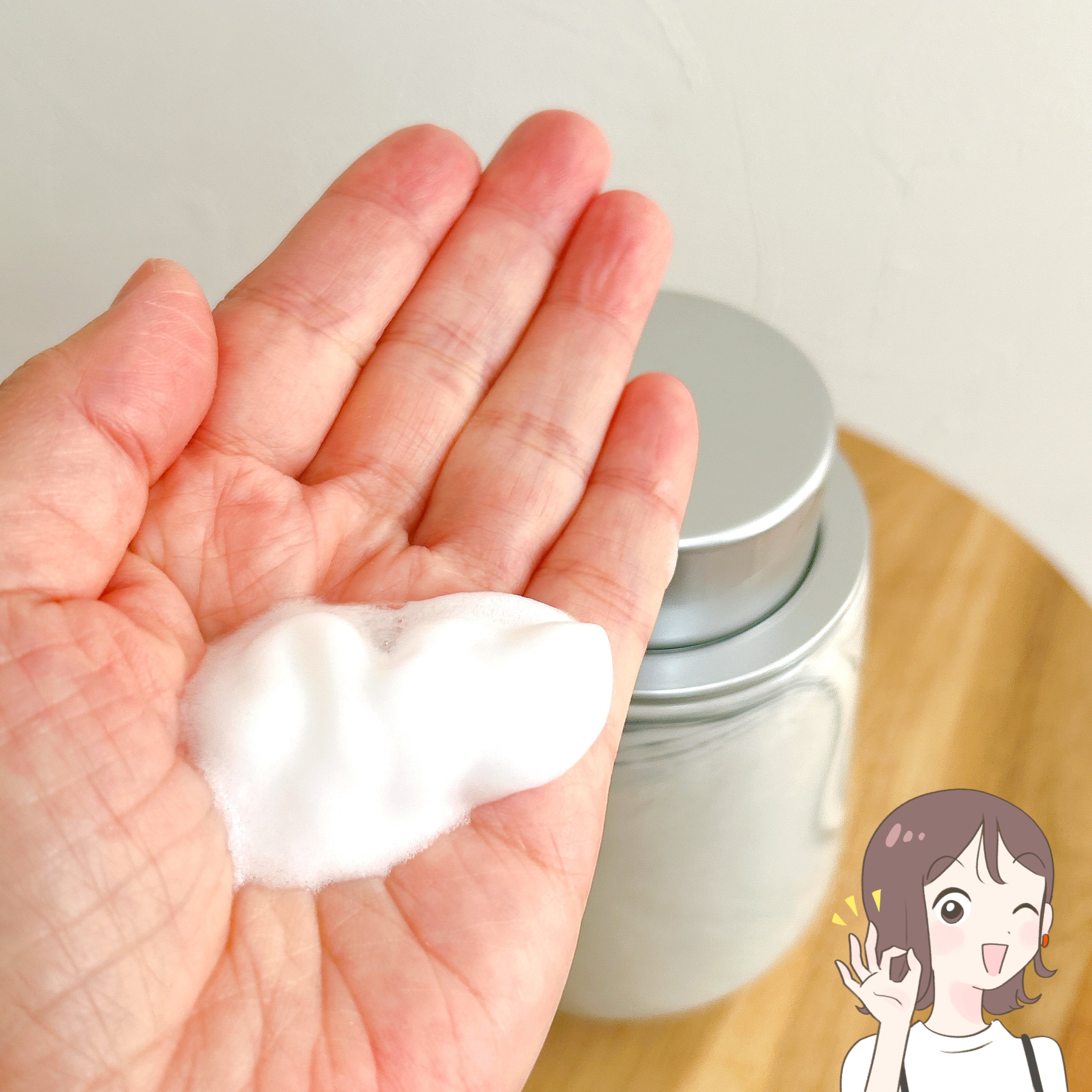泡はヘアムースのようにきめ細かくて、今まで使っていたディスペンサーよりもふわふわな感じがします。泡タイプの洗顔フォームを入れても使い心地が良さそうだなと思いました。