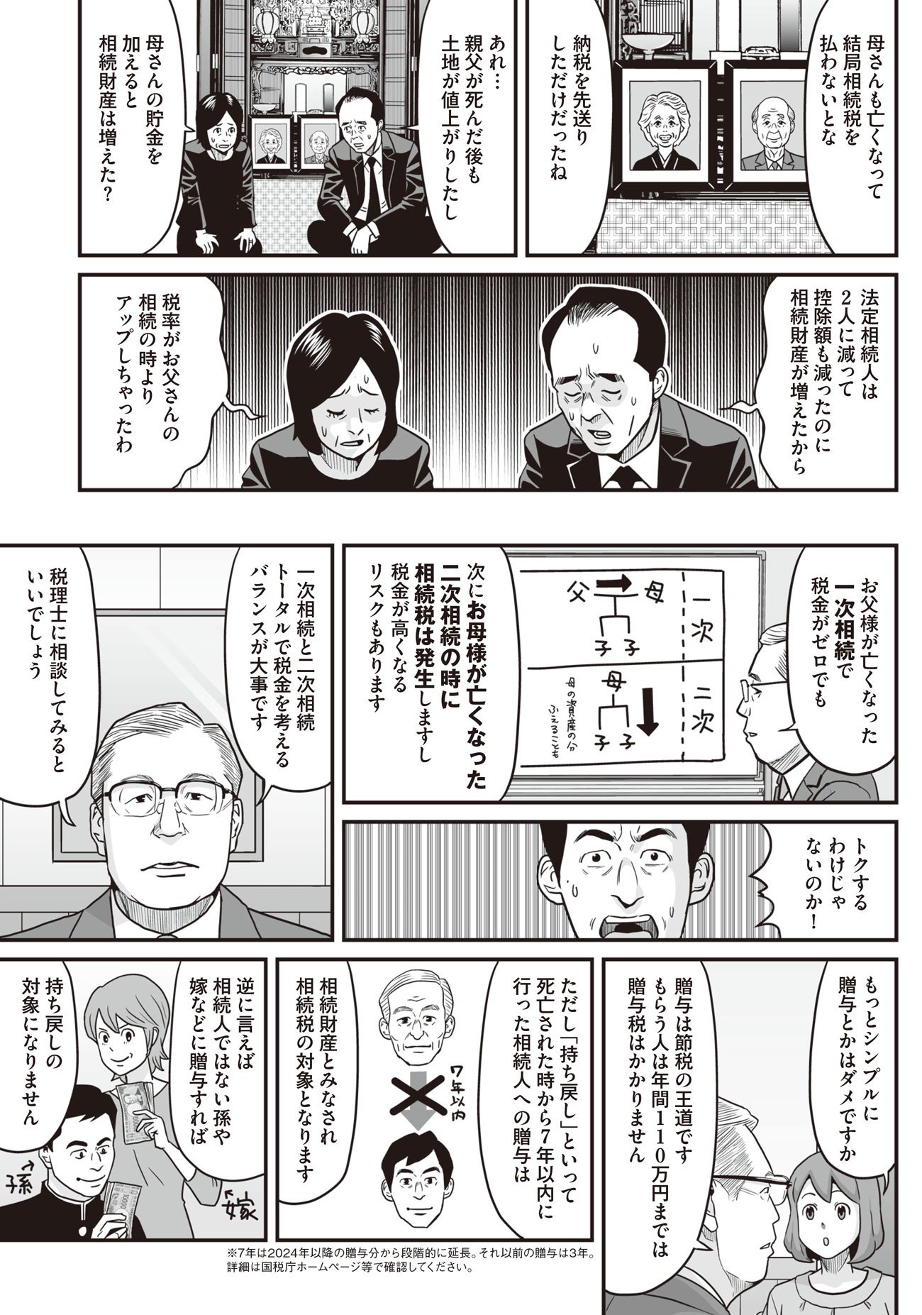 【マンガ】都心の実家が1億円でも“相続税ゼロ”!?知らなきゃ損する評価額のカラクリ 西アズナブル ダイヤモンド・ザイ編集部 マネー・投資ホットニュース from ZAi 2025年11月20日 12:00 記事をクリップ URLをコピー 記事を印刷 Xでシェア Facebookでシェア はてなブックマークでシェア LINEでシェア noteでシェア 税金が高くなりやすいのは配偶者より子の相続! 税理士に相談するなどして、節税を意識しよう! 拡大画像表示 拡大画像表示 拡大画像表示 拡大画像表示 「ダイヤモンド・ザイ」2026年1月号は好評発売中! 1億円の作り方&買いの高配当株74! 第1特集は、「1億円の作り方―勝ち組13人の29のワザ」。 すでに億の資産を作った13人の勝ち組投資家たちの勝ちワザを一挙に大公開!「成長株」「割安株」「高配当・優待株」「レバレッジ投資」の代表的な手法別なので、自分にぴったりのワザを探せるはず。会社員でありながら資産を築いた人も多く、真似しやすいワザが盛りだくさんです。 これに並ぶ大特集が「2026年に買いの高配当株74銘柄」。時価総額1兆円以上の“安心して持てる「最強の高配当株」、今後の利回りアップが狙える「未来の高配当株」、値上がりと配当をダブルで狙う 「上がる高配当株」を大公開しています。 その他の注目特集はこちら! ・【別冊付録】株で勝てる!ポイ活もできる!「お金カレンダー2026」 ・最新決算では発掘!株価爆上げ株36 ・少額&高額品の駆け込みふるさと納税カタログ22 ・2026年NISAはこの9本の投信を買え! など 書店およびネット書店で好評発売中です!ぜひご購読を。 1 2 記事をクリップ URLをコピー 記事を印刷 Xでシェア Facebookでシェア はてなブックマークでシェア LINEでシェア noteでシェア 有料会員限定機能です詳細はこちら おすすめの会員限定記事 エプソンが「インクで稼ぐ」最強ビジネスモデルを捨てて成功できた納得の理由 目の前の人が「本当に優秀な人」か一発でわかる「意地悪すぎる質問」【佐藤優が明かす】 関連記事 年末に見直すだけで資産が伸びるかも!NISA初心者が笑顔になる投資信託選びのコツ ダイヤモンド・ザイ編集部 株主優待で田植えや稲刈り、工場見学!?非日常のイベントが多数の“体験型”株主優待が個人投資家の間で話題のワケとは? 財前孝汰郎,ダイヤモンド・ザイ編集部 「昭和天皇は1500万円を19億円に!」天皇陛下の資産運用術と“プライベート金”の使い道 綾部和也,ダイヤモンド・ザイ編集部 「年末ギリギリに買って失敗…」NISAでやりがちな“落とし穴”に注意! ダイヤモンド・ザイ編集部 特集 あなたにおすすめ