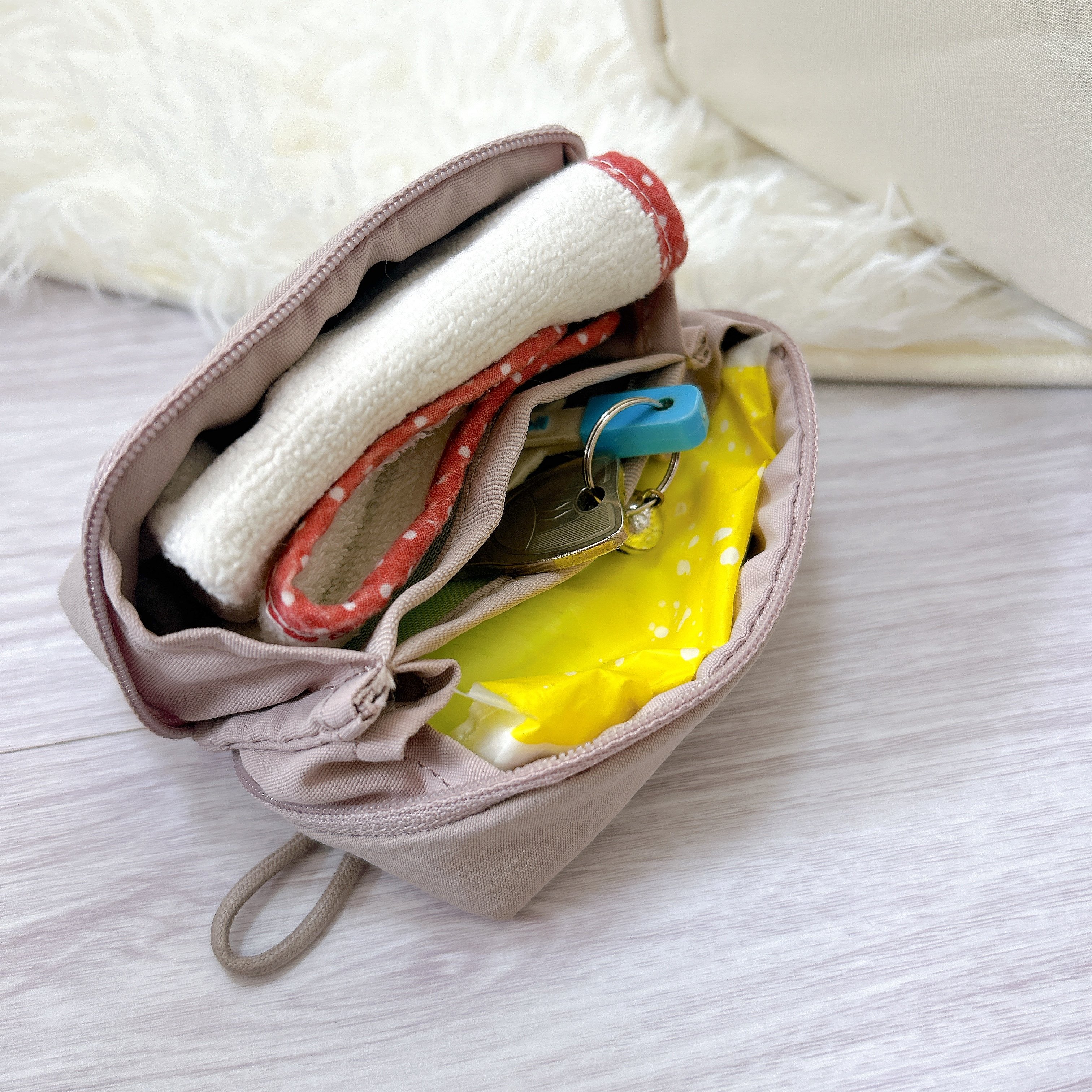 鍵を入れておくのにもちょうど良かったです。両サイドにはミニタオルとポケットティッシュもギリギリ収納できました。
