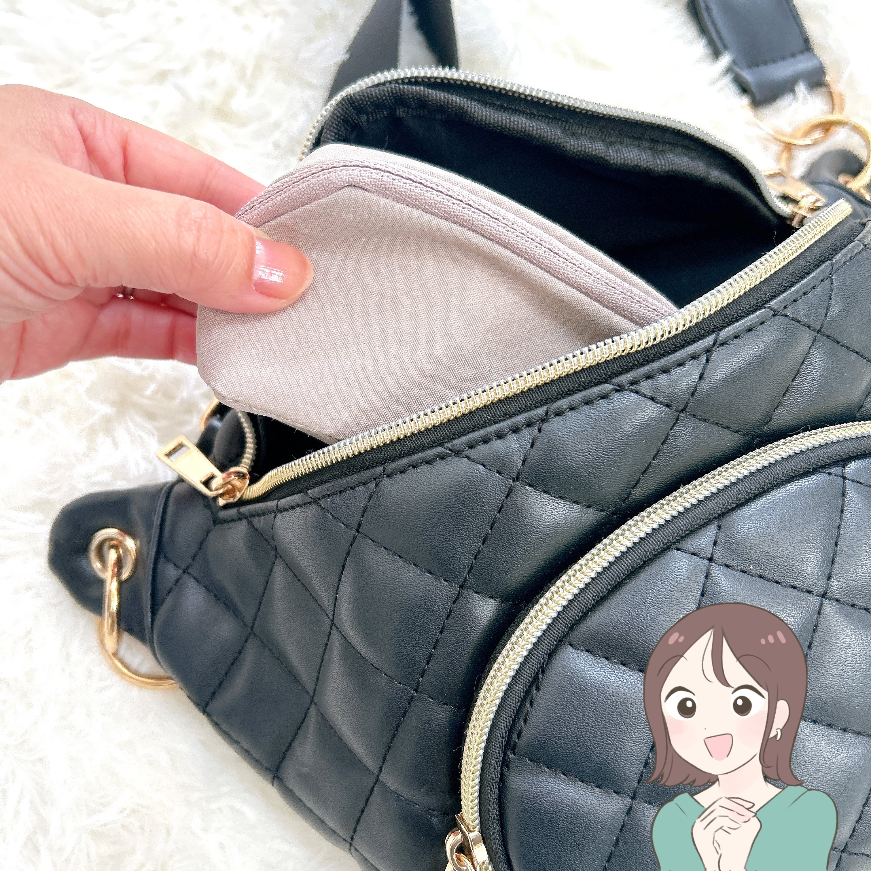 ポーチにはループが付いているため、バッグに引っ掛けて持ち歩くこともできます。リップや鍵がサッと取り出せるし、バッグを変えてもポーチごと付け替えるだけで荷物の移動ができて楽ちん!