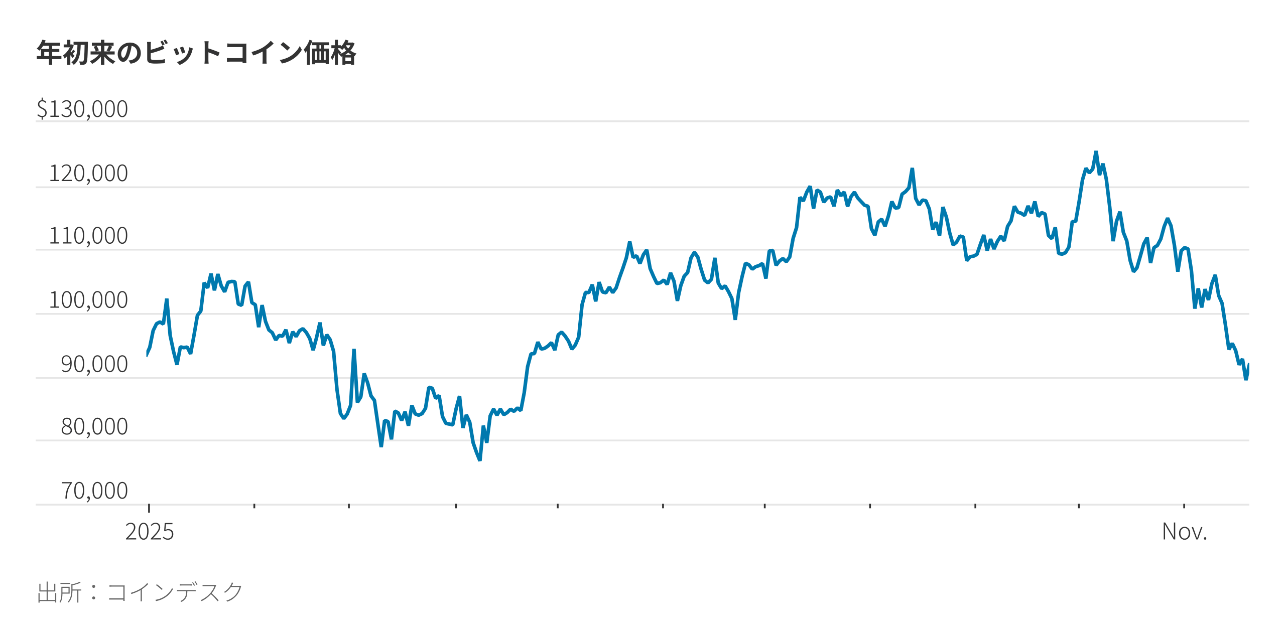今年上昇した暗号資産(仮想通貨)価格は、大量に積み上がる負債に支えられていた。トレーダーはレバレッジ(借り入れ)を活用した取引で、利益を増幅させていた。だが過去2週間の相場急落で、こうした賭けの危険性が表面化している。投資家はかつてないほど多様な手法で、暗号資産に複雑な賭けを行っている。場合によっては1ドルの元手でビットコイン100ドル分のエクスポージャーを得られる。市場が借り手に有利な方向に動けば、この戦略は思いがけないほどの利益をもたらす。一方、逆方向に動けば、トレーダーは大きな損失を被る可能性があり、十分な追加証拠金(追い証)を差し入れなければ、保有分を強制的に決済(ロスカット)される場合もある。