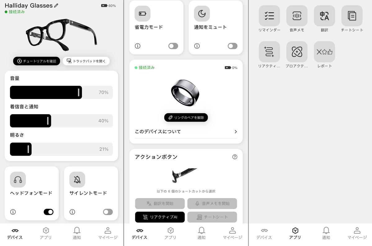 専用アプリは常時起動しておく必要はなく、設定を変えたり、アクションボタンの機能を選んだり、トラックパッドに似た画面でHallidayを操作したいような場合に利用するスタイルだ。