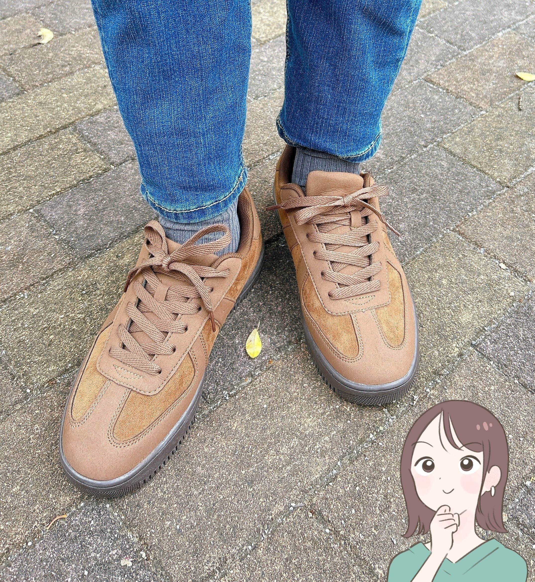 あたたかみのあるスウェード調の素材と、合成皮革の組み合わせがクラシカルな雰囲気のスニーカーです。