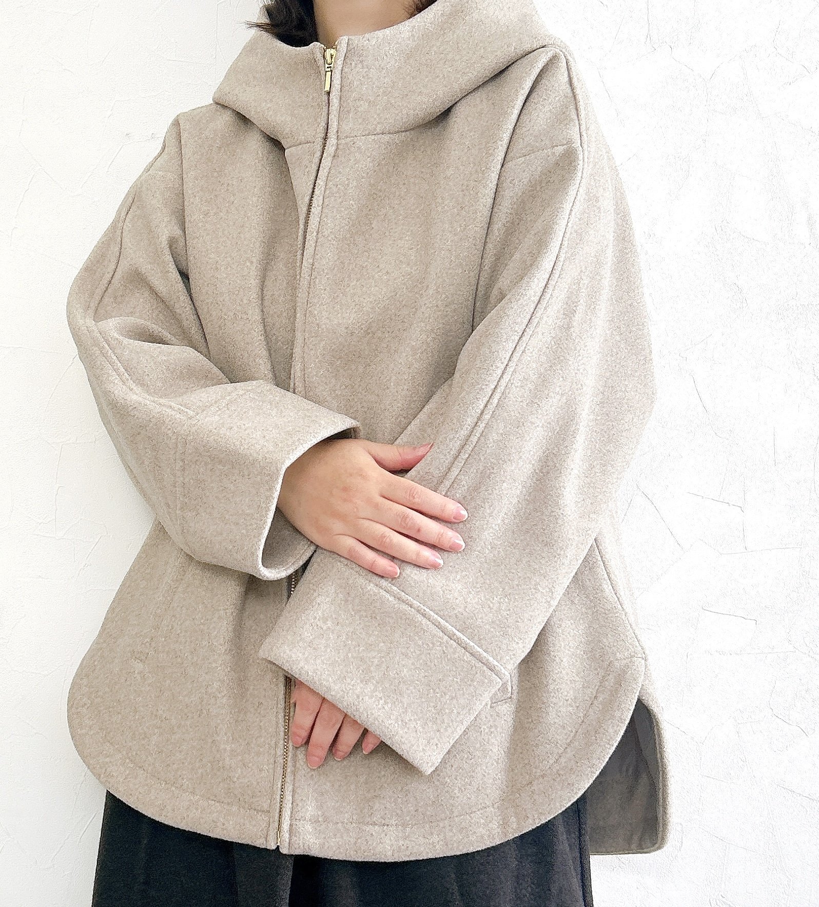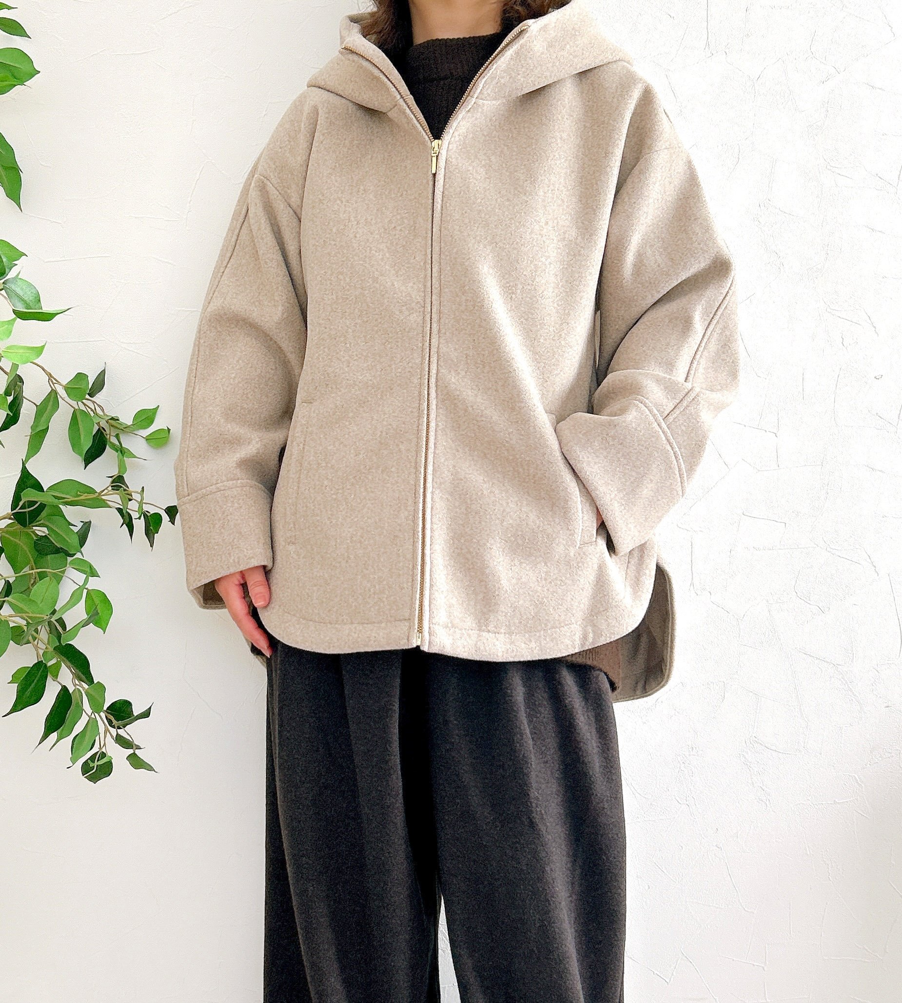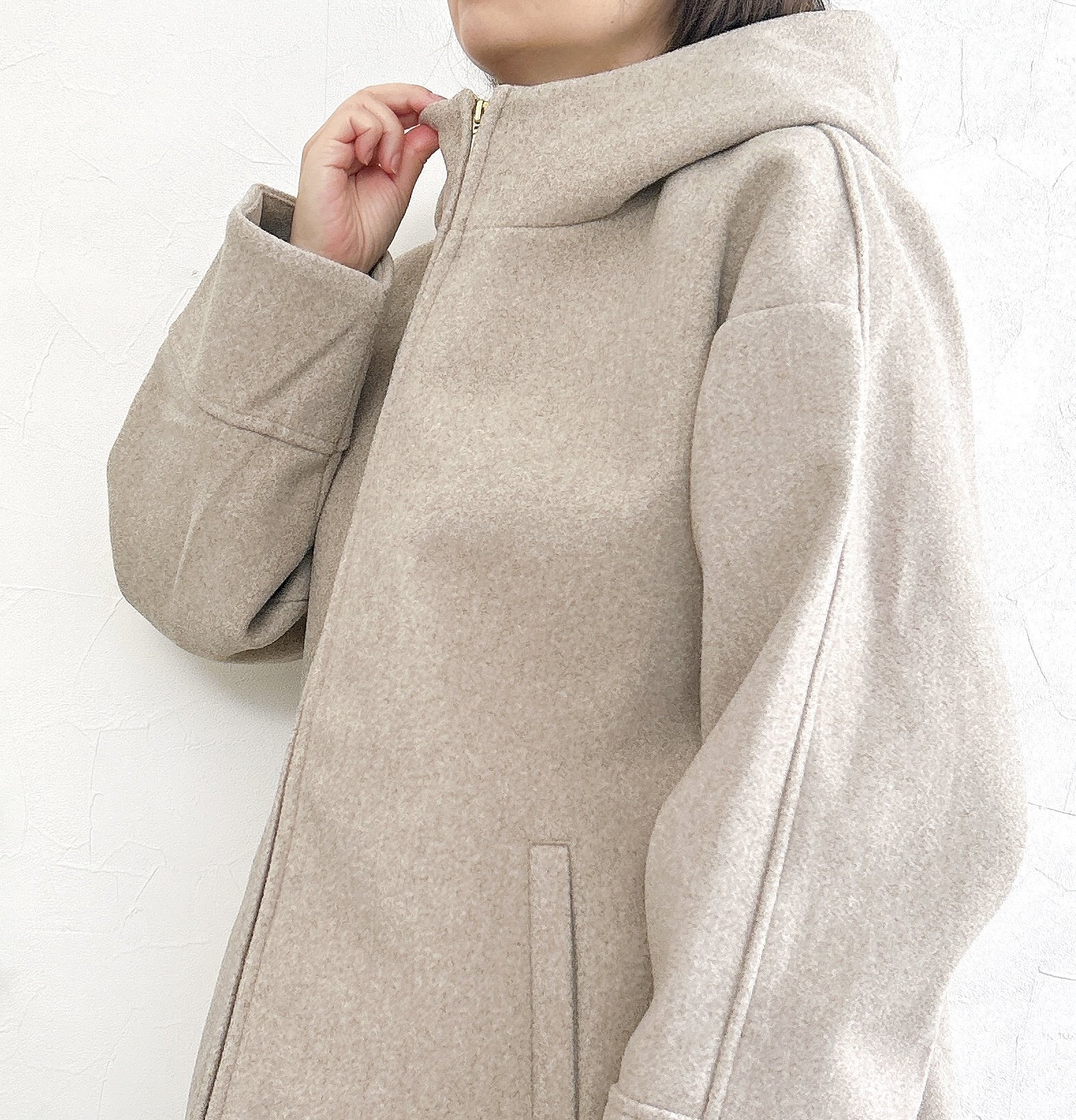 フードは大きめの作りになっていて、すっぽりと顔回りまで寒さをカバーしてくれます。風が強い日でもこれなら安心して出かけられそう!