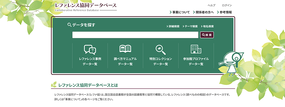 「レファレンス協同データベース」のトップページ拡大画像表示