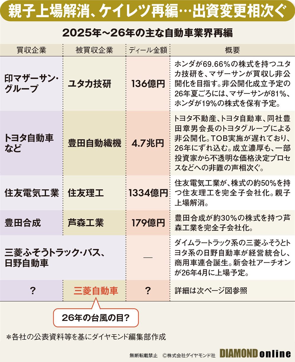 次ページでは、26年に「再編台風の目」となる自動車メーカーを明かす。また、25年に自動車業界で最も大きな再編となった「豊田自動織機非公開化」の行方も予測する。