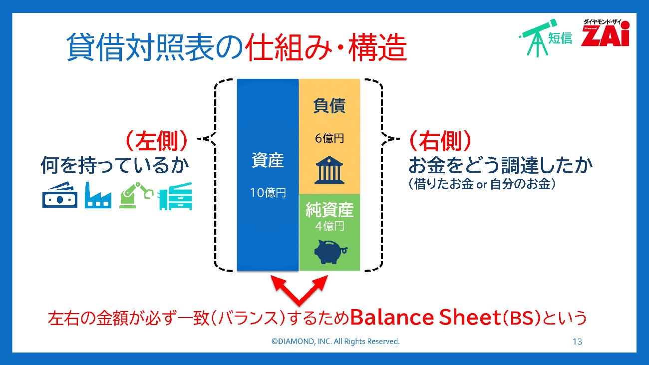 小林右側はお金をどう集めたか(調達源泉)。左側は集めたお金で何を買ったか(資産)。