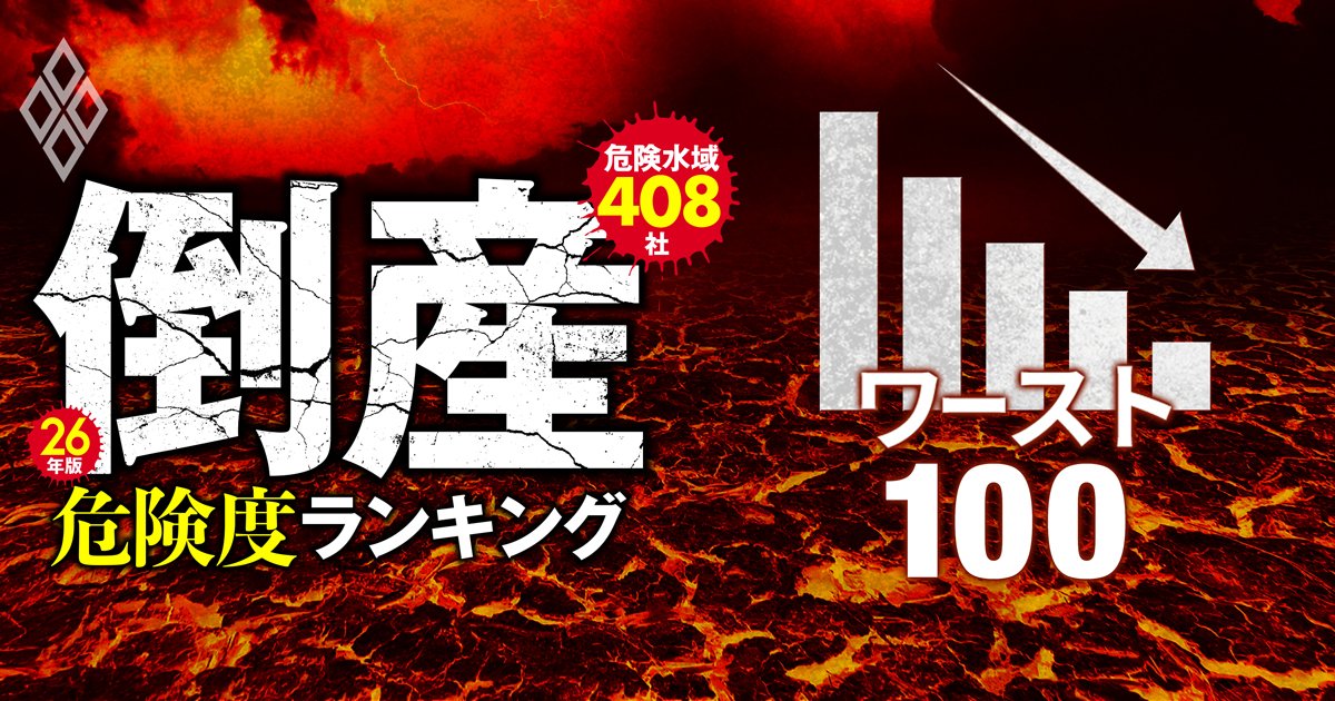 全国の企業倒産件数が2年連続で1万件を超えた。物価高と深刻な人手不足による賃上げ圧力が重くのしかかる中、2025年の倒産件数は12年ぶりの高水準となっている。長期金利の急上昇も大きな懸念材料だ。そこで、上場企業約3900社の倒産危険度を総点検。総合版として、リスクの高い408社をあぶり出した。特集『26年版・倒産危険度ランキング【危険水域408社】過剰債務企業に迫る「最終審判」』の#21では、全業種ワースト100を紹介する。(ダイヤモンド編集部編集委員 清水理裕)