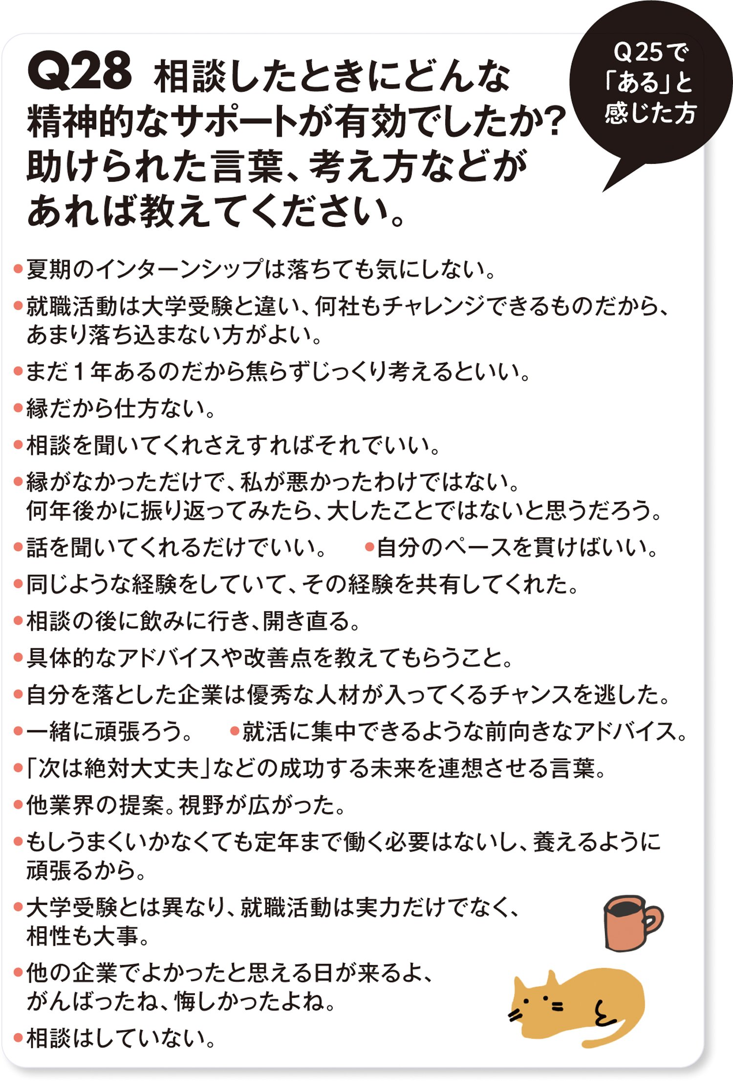 「キャリアセンターや学生相談室は親も利用できます(※要確認)。顔色が悪く、不眠や食欲不振が続くなど心配な様子に気付いたら、まずは大学内の専門家とのつながりをつくってください。そこで改善しなければ病院を受診して医師のアドバイスをもらうのも有効です」