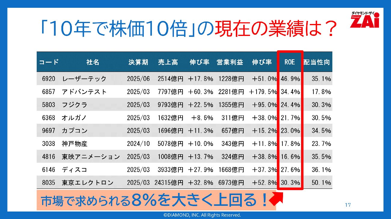 ⇒「ROE20%でも届かない」10倍株に必要な条件とは【決算書1枚で見つかる10倍株・連続増配株! 第3回:その3】