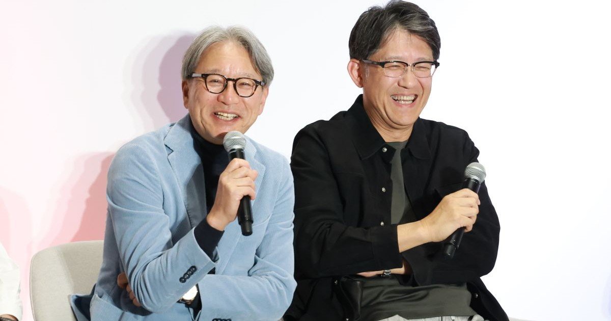 ジャパンモビリティショーで愛車について話すホンダの三部敏宏社長(左)とトヨタ自動車の佐藤恒治社長 Photo:JIJI