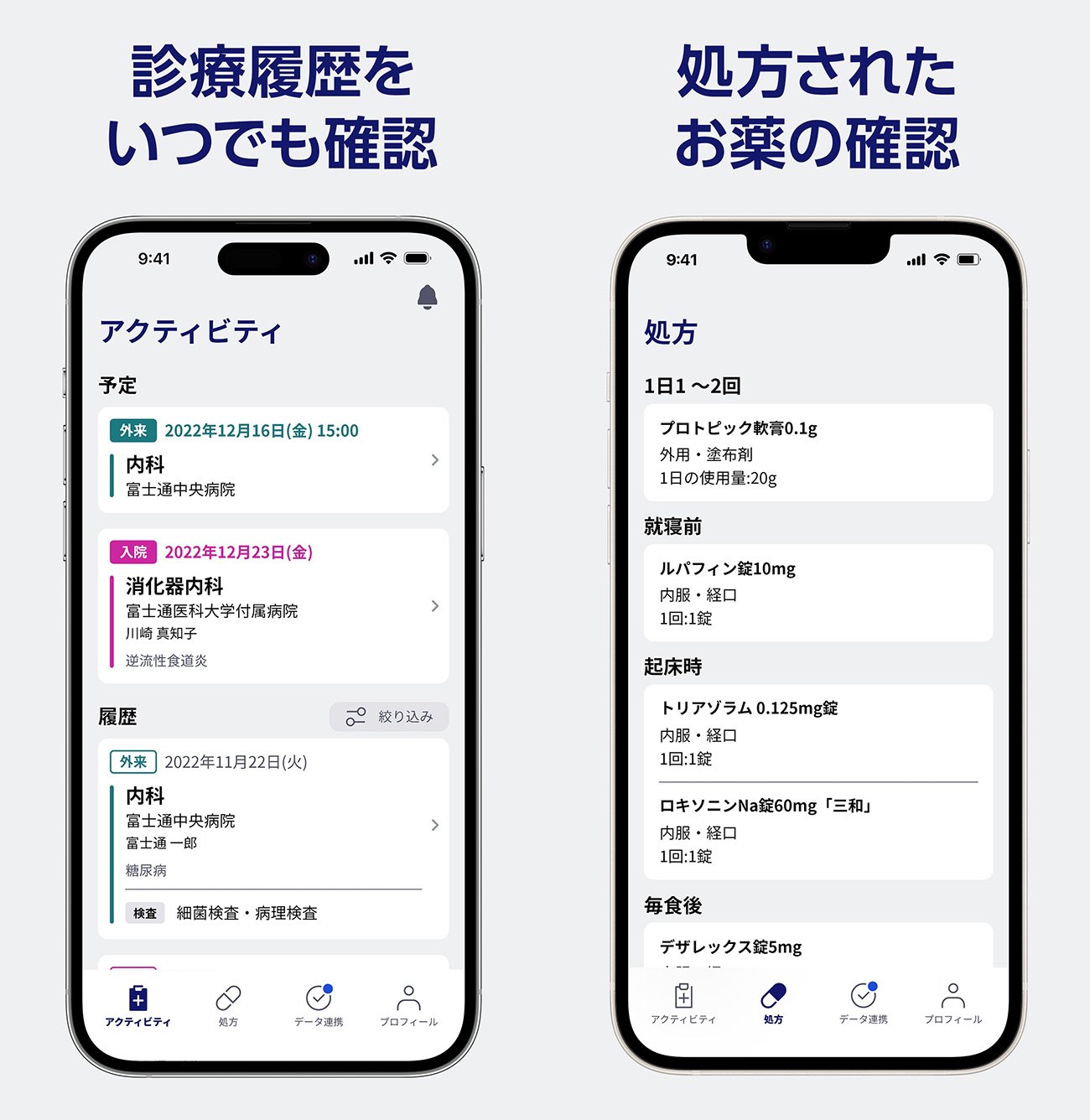 患者向けスマホアプリ「ポータブルカルテ」。患者は手元のスマートフォンで簡単に自身の診療データを参照できる。また診療データ、および健康データの外部保存や利活用に関する同意をアプリで操作し、いつでも同意撤回が可能だ拡大画像表示