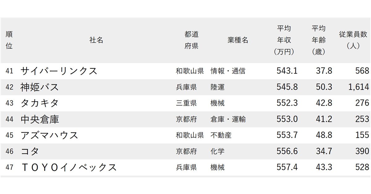 上場企業の有価証券報告書に記載された平均年収のデータを基に、「年収が低い会社ランキング2025【大阪除く近畿地方】」をお届けする。