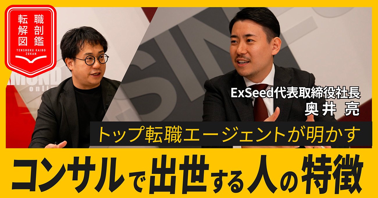 株式会社ExSeed代表取締役社長 2021年ビズリーチ「ヘッドハンター・オブ・ザ・イヤー」受賞。 総合系コンサルティングファームに入社し、大手金融・流通業界をクライアントに、ITから戦略案件まで幅広く経験。その後、マーケティング支援企業を経て、株式会社アサインを共同設立し、トップエージェントとして活躍しつつ、事業・数百人規模の組織グロースを牽引。 2025年に株式会社ExSeedを創業。「日本一の代理人」として、志を共にし、企業と人材の未来を切り拓くことを使命に、事業会社やコンサルファームのCxOクラスと共創。組織ブランディング、チームディベロップメント、エグゼクティブから若手までの採用支援を一気通貫で手掛ける。 ダイヤモンド・オンラインでは、キャリアの正しい考え方や、失敗しない転職術について解説した動画『最高のキャリア・転職術』を公開中。またホームページ「最速のキャリア戦略」では、業界職種研究やキャリア論に関する情報を提供している。