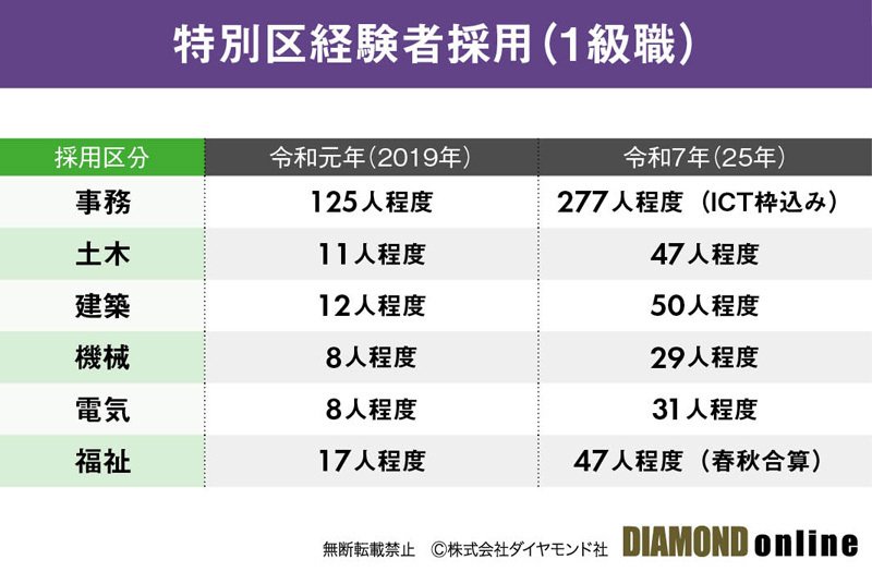 事例として特別区の経験者採用試験を挙げたが、令和に入ってからの数年でもこれだけの変化が起きていることが分かるはずだ。
