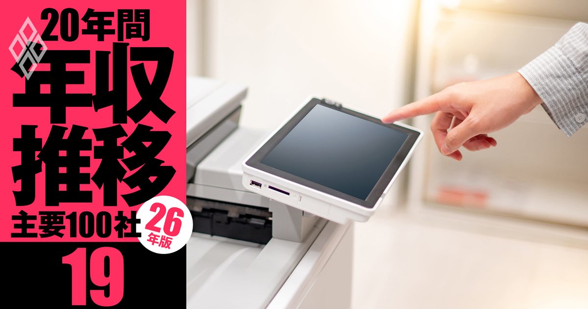 複合機・プリンター業界はペーパーレス化の逆風下にあるが、各社はカメラや医療、半導体材料、デジタルサービスといった複合機以外の成長分野を伸ばし、収益構造の転換を急いでいる。今回は変革期にあるキヤノン、富士フイルムホールディングス、リコーを取り上げる。3社の中で、世代間の「年収格差」はどうなっているのか。特集『5世代格差の残酷!主要100社26年版「20年間年収推移」氷河期、バブル…どの世代が損をした?』(全39回)の#19では、過去20年間の推移を10年刻みにして、5世代別の平均年収と主要100社内ランクを独自に試算した。その結果、キヤノンとリコーは65歳のOBが優位だった一方、富士フイルムだけは若手が「勝ち組」となった。(ダイヤモンド編集部編集委員 清水理裕)
