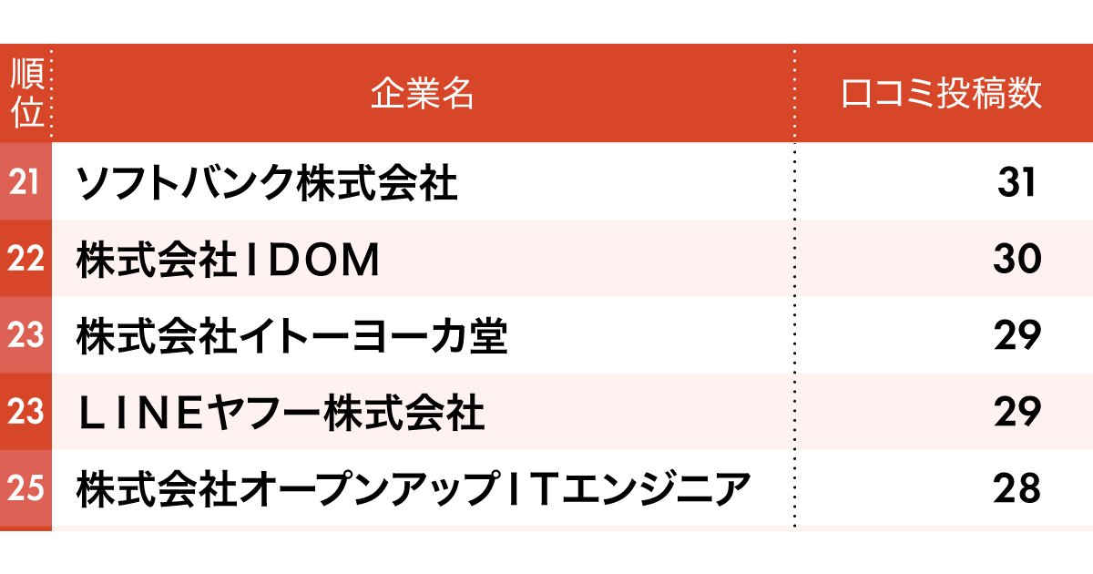 次ページからは、ランキング上位の具体的な社名と投稿数とともに、具体的な投稿内容も明らかにする。