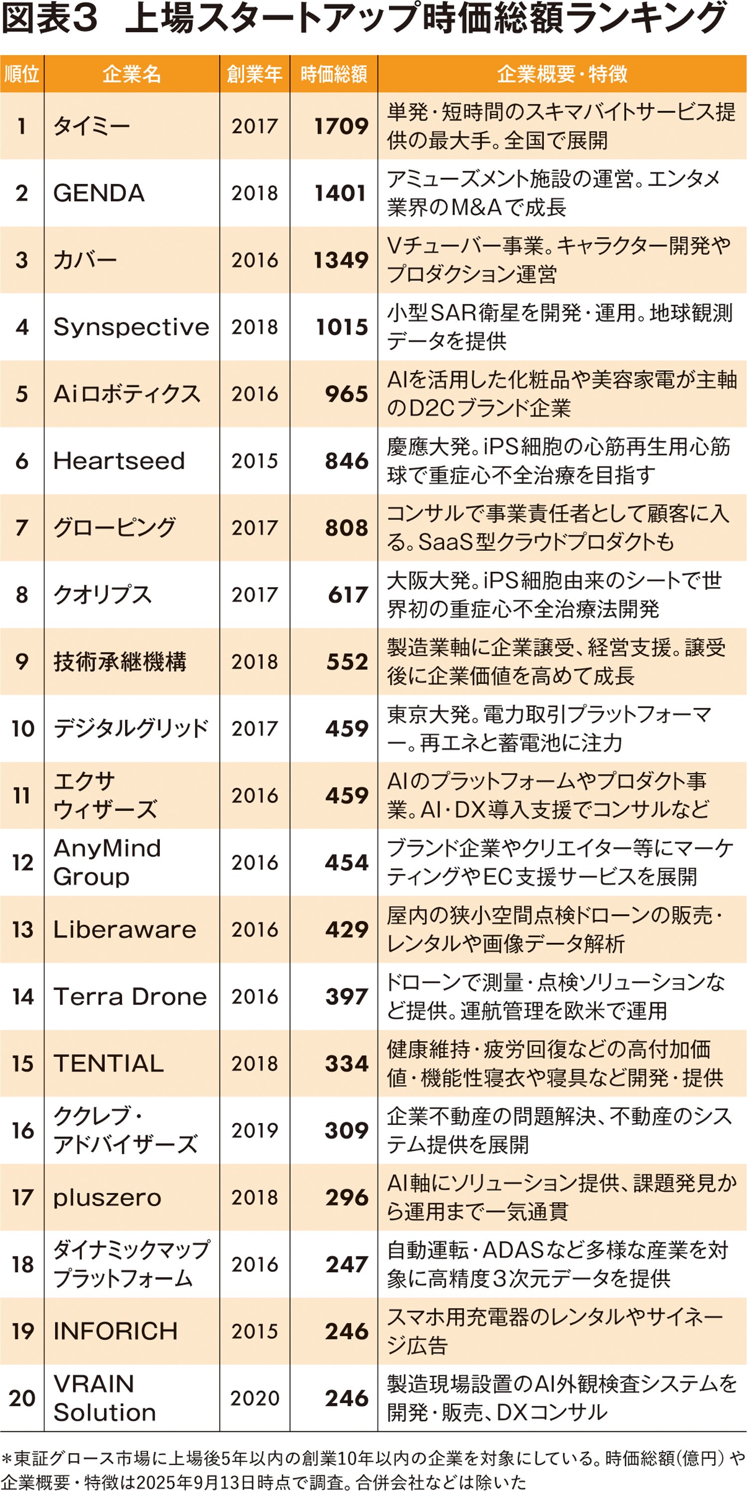 図表3では、東証グロース市場に上場後5年以内、創業10年以内のスタートアップを対象に、時価総額上位の企業をランキングした。スタートアップを探す方法として参考にしてほしい。