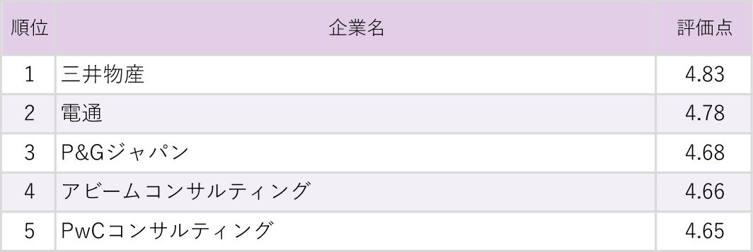 それでは、今回のランキング結果はどうなったのか。具体的なランキングデータとクチコミを参考に、ランクインした企業の特徴を探ってみた。