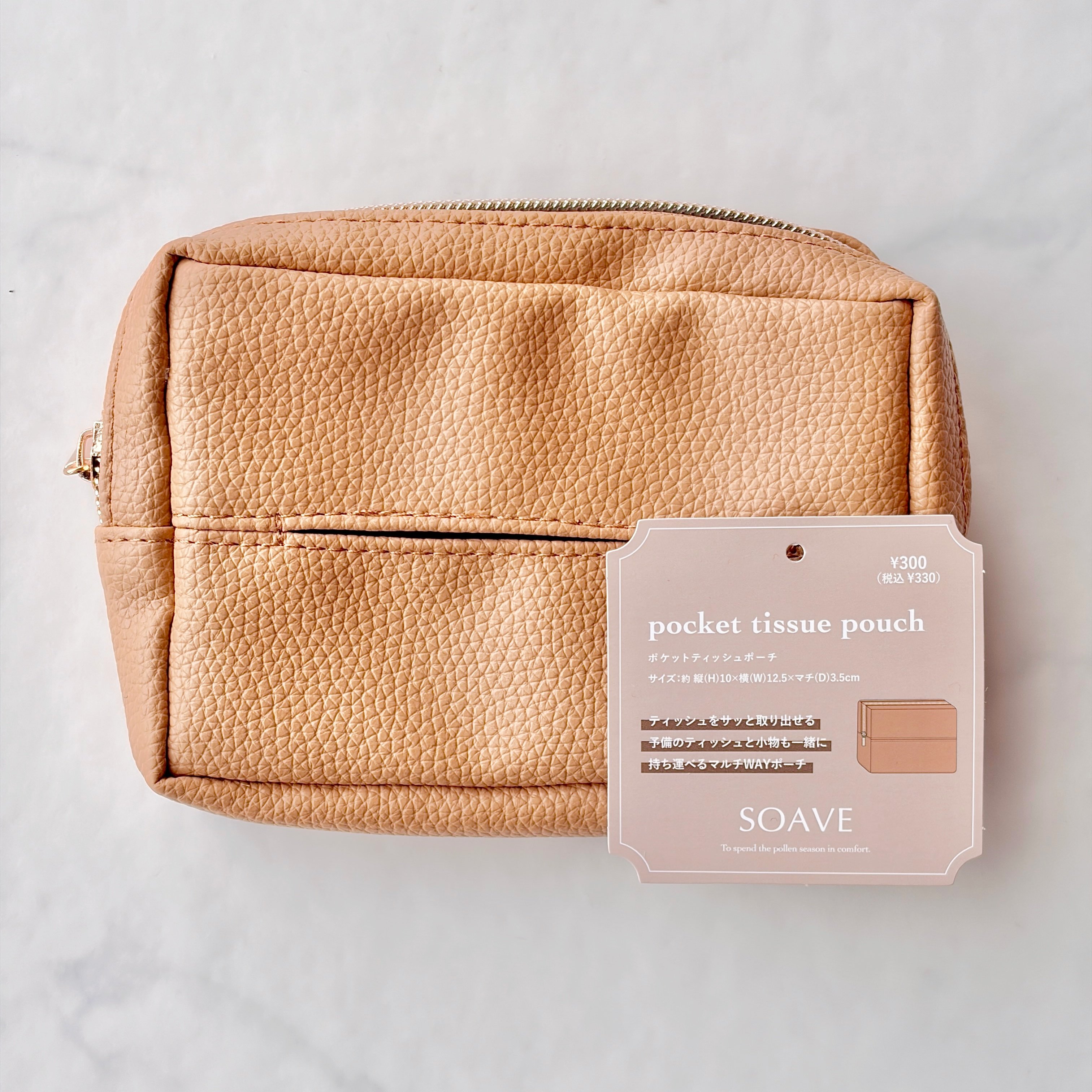 価格は330円(以下、すべて税込)。カラーはキャメル、ブラック、アイボリーの3色展開で、ぬくもりのある色味がかわいいキャメルを選びました。