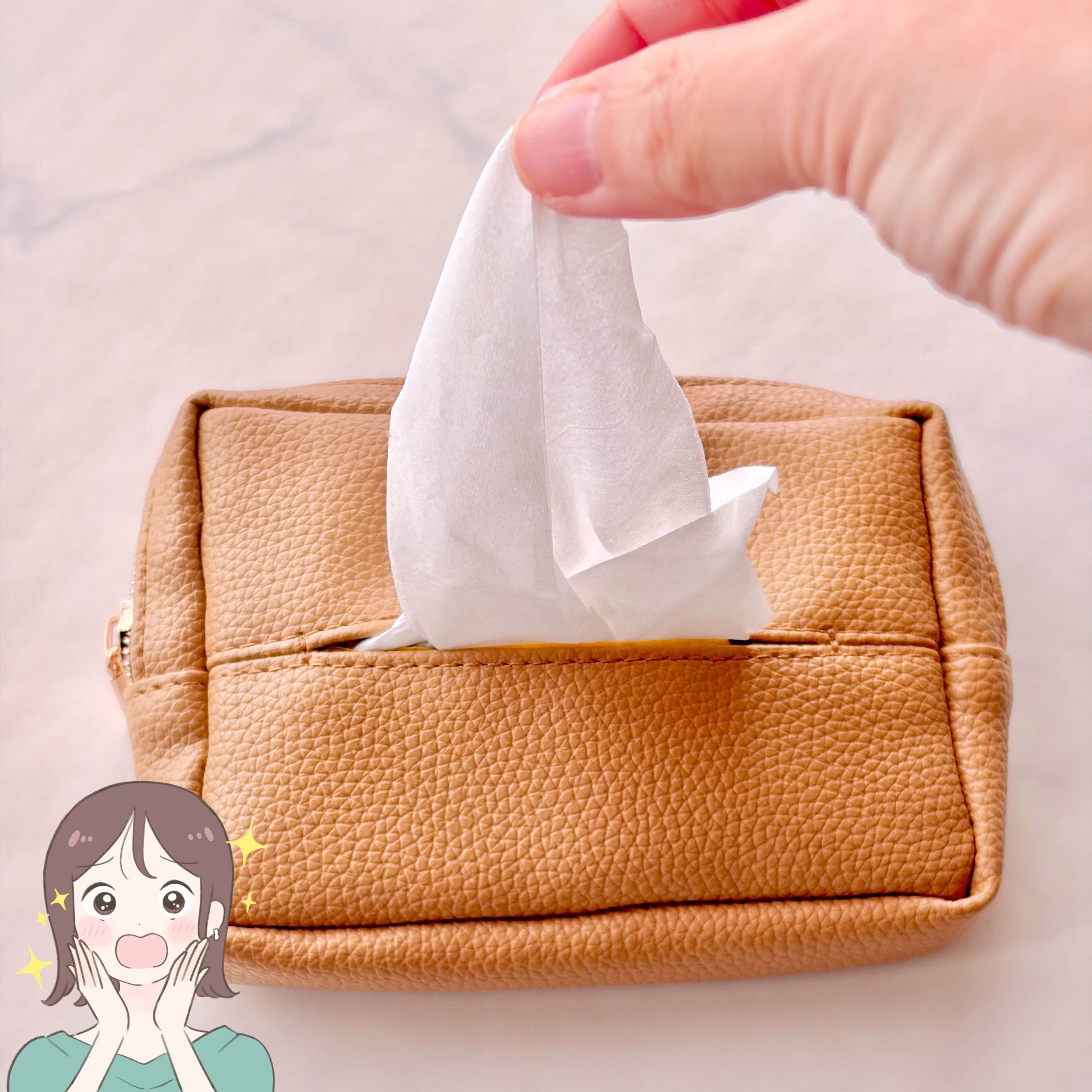 ティッシュケースが一体化したポーチ