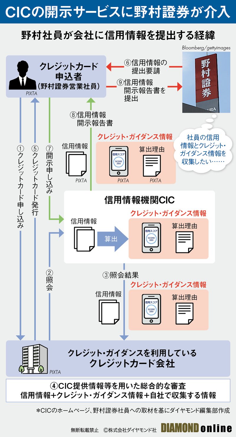 ダイヤモンド編集部は、野村證券が営業社員に信用情報の提出を求めたタイミングで注意喚起に踏み切った背景に加え、会社が社員に信用情報の提出を求めることの是非や、信用情報を求められた社員側の留意点についてCICに確認。野村證券にも、CICの方針に沿った取り組みかどうかについて聞いた。