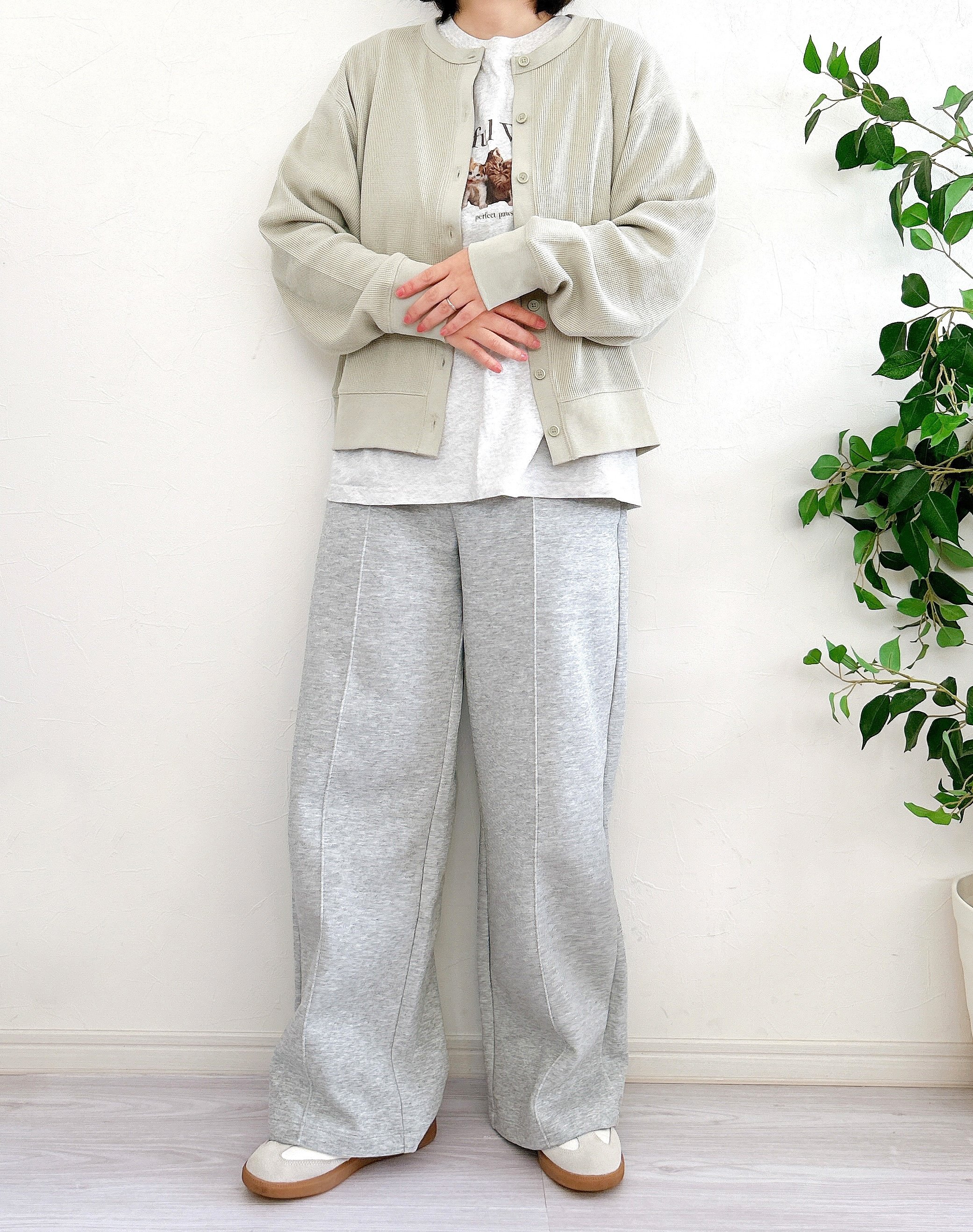 万能トップスといえば、GUの「スウェットライクニットドルマンスリーブカーディガン」もおすすめ
