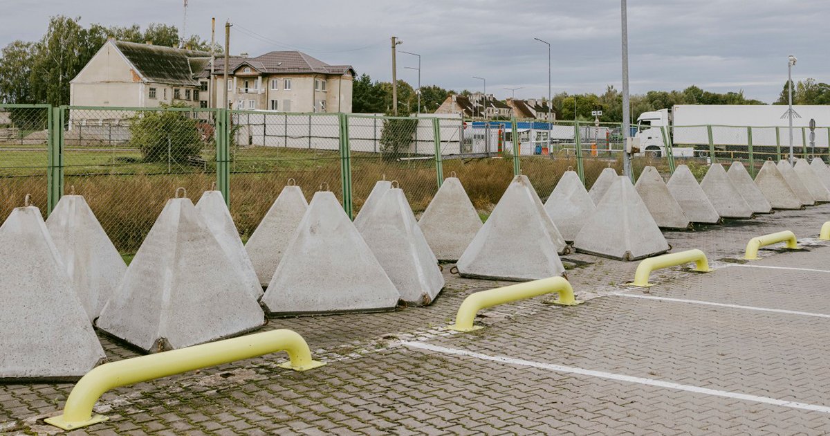 ロシアの飛び地カリーニングラードと国境を接する、リトアニアのマリヤンポレ近くに設置されたコンクリートブロックPATRICK WACK/INLAND FOR WSJ