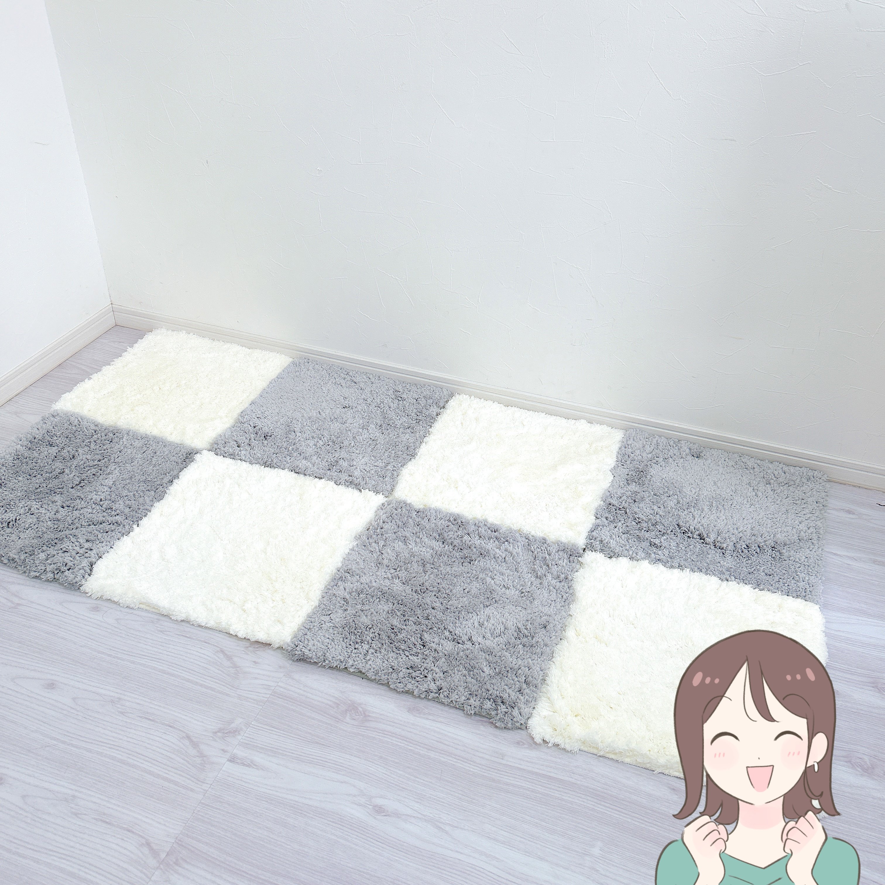 カラーはアイボリー、ブラウン、ライトグレー、ダークグレーの4色あり、今回はアイボリー4枚とライトグレー4枚の合計8枚を購入。2列に並べると、一畳よりも少し小さいくらいの大きさです。