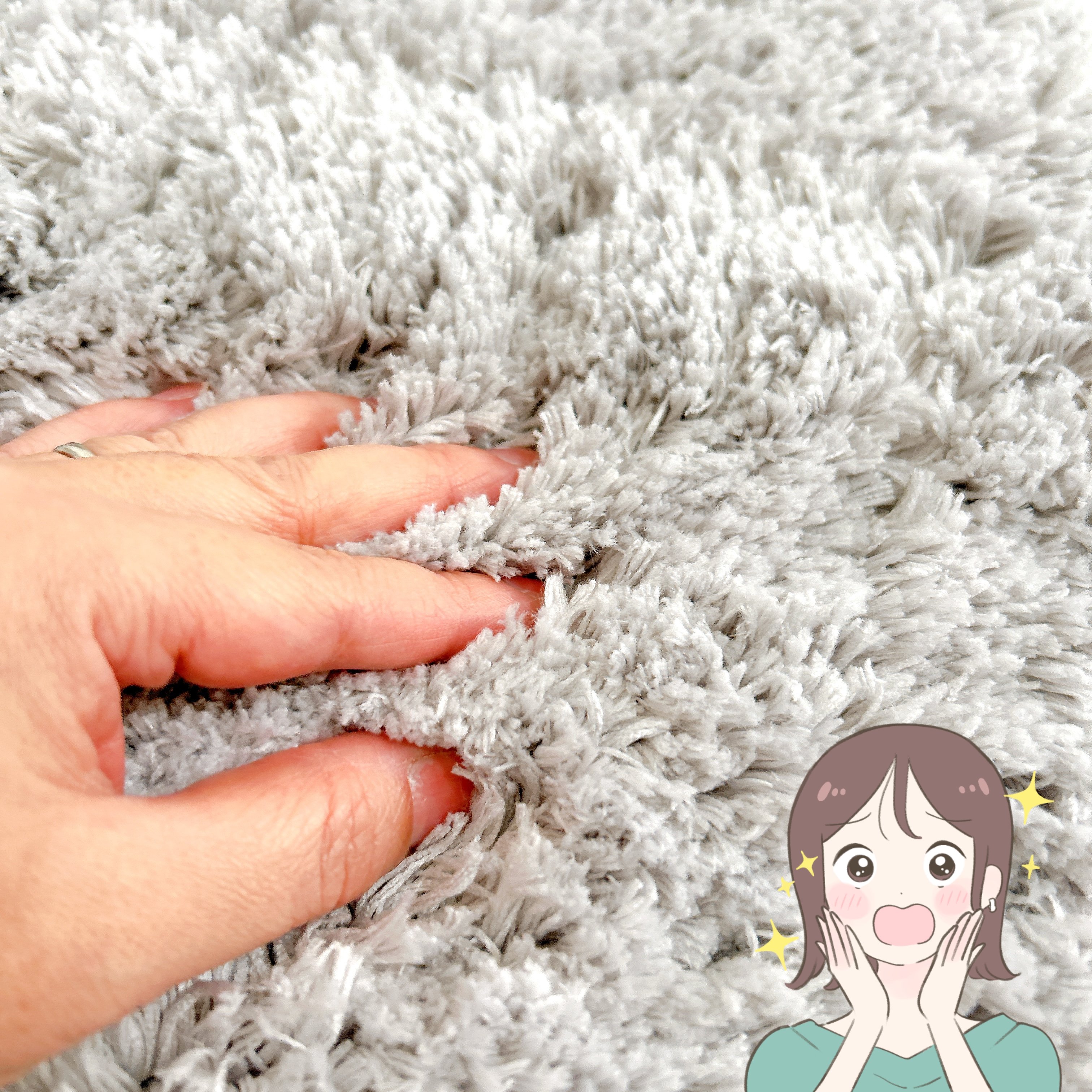 とろけるような触り心地で、ウットリする気持ちよさ!毛足は約2cmの厚さがあり、寝転がっても座っていても体やお尻が痛くなりにくいです。