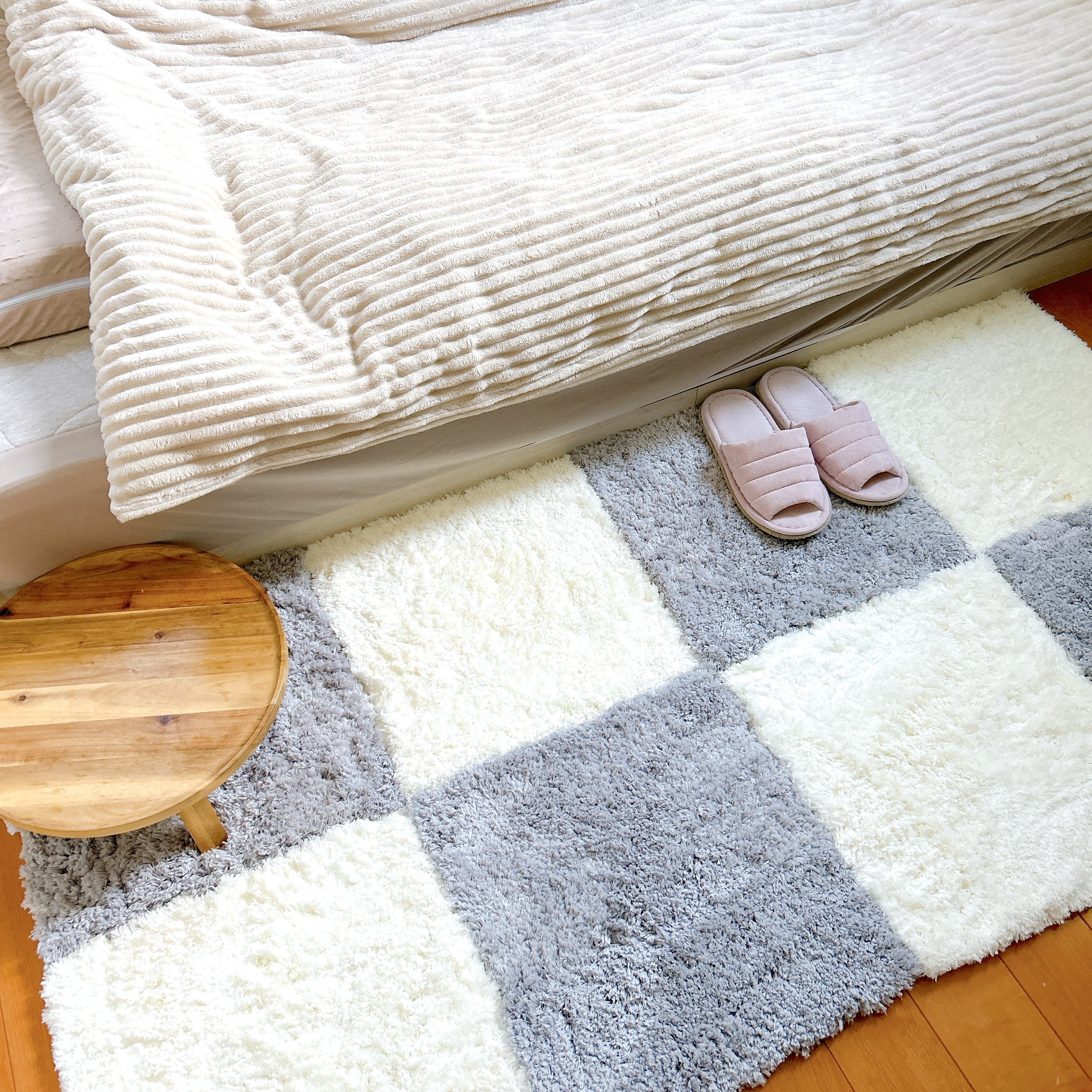 自分好みのサイズやカラーコーディネートを作れるのがとにかく魅力。ベッドサイドに敷く用のちょっとしたラグが欲しかったので、ぴったりのサイズが設置できて嬉しいです。