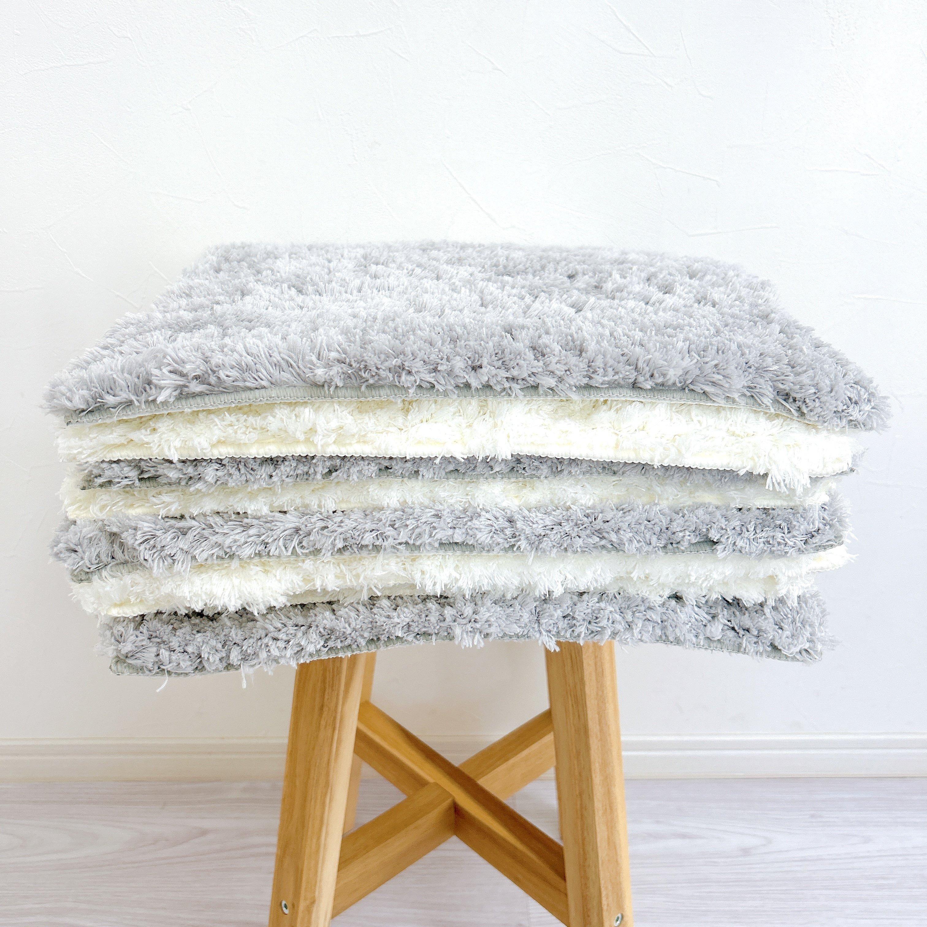 また、ラグを使わないシーズンは、重ねてコンパクトに収納できるところも助かります。場所を取らないし、洗濯もしやすくて使い勝手の良さに感動してしまいました!
